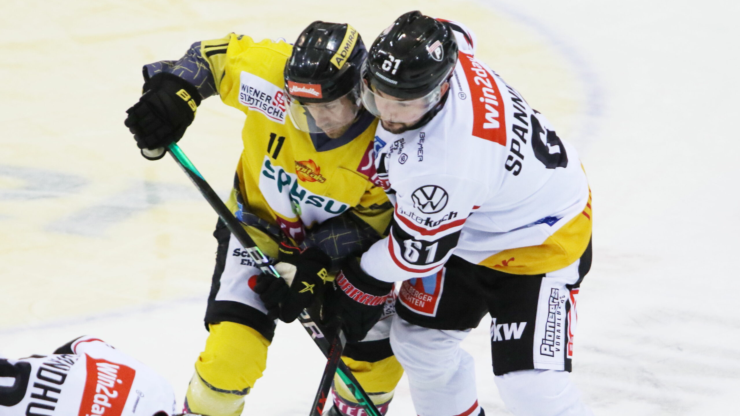 6T4A8564 27. September 2022 2560 × 1440 6T4A8564 ICEHL Round 3: Vienna Capitals – Pioneers Vorarlberg Sascha Bauer #11, Patrick Spannring #61 Steffl Arena, © Puckfans.at/Andreas Robanser