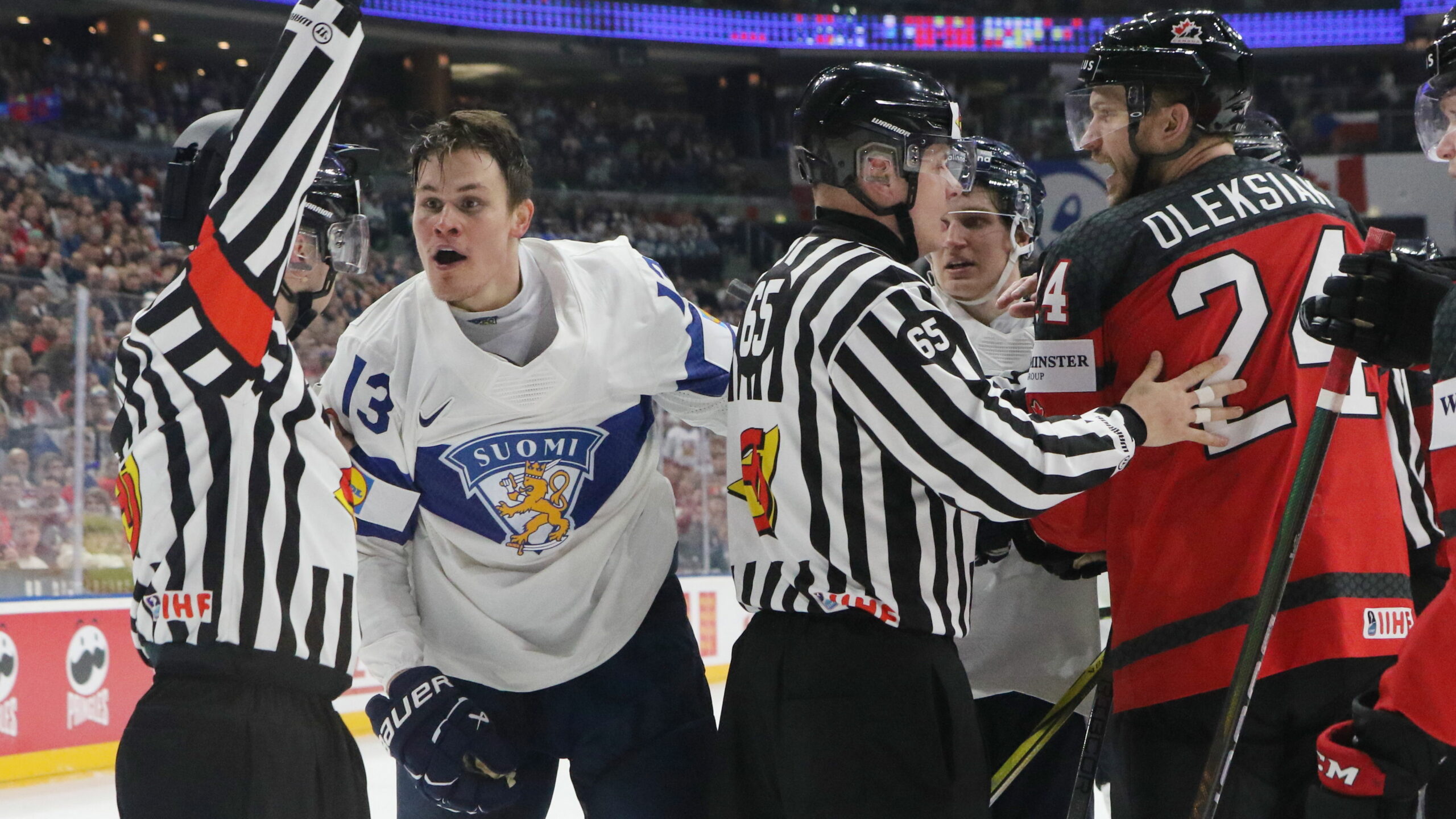 6T4A8813 18. Mai 2024 2560 × 1440 6T4A8813 IIHF World Championship 2024 CAN – FIN Jesse Puljujärvi #13, Jamie Oleksiak #24 Prague Arena, Prague CZE © Puckfans.at / Andreas Robanser