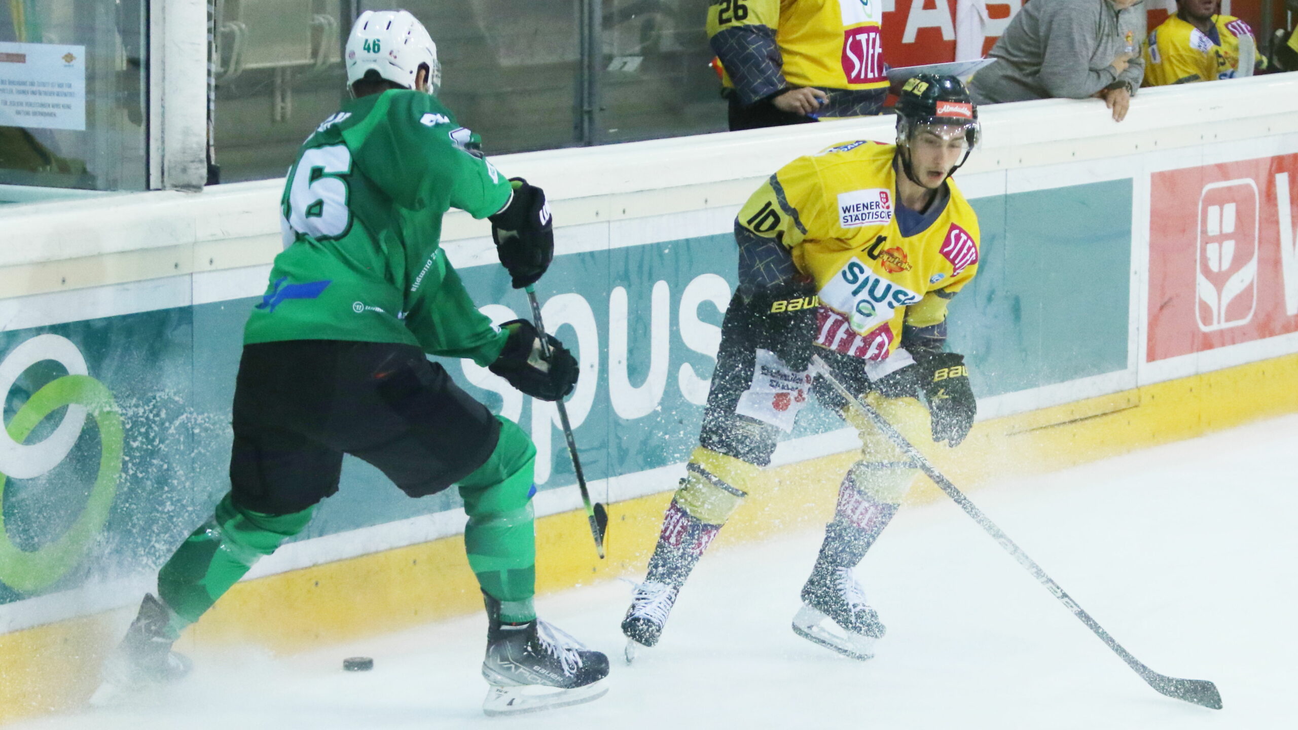 6T4A8878 30. September 2022 2560 × 1440 6T4A8878 ICEHL Round 5: Vienna Capitals – HK SZ Olimpija Ljubljana Nejc Stojan #46, Patrick Antal #10 Steffl Arena, © Puckfans.at/Andreas Robanser