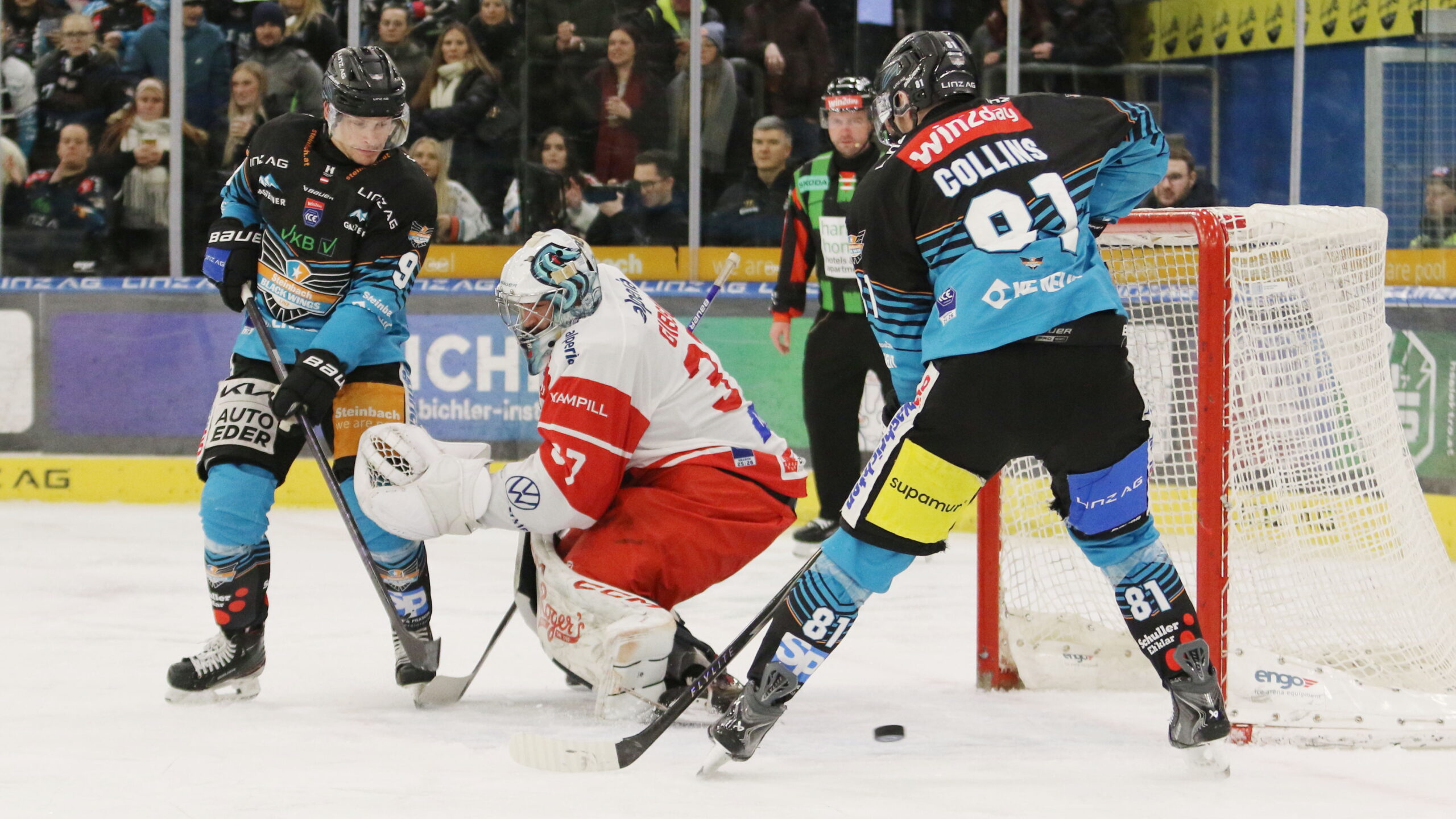 Emil Romig #9, Christopher Gibson #37, Sean Collins #81, ICEHL Round 44 Black Wings Linz – HCB Südtirol, Linz AG Eisarena, © Puckfans.at / Andreas Robanser
