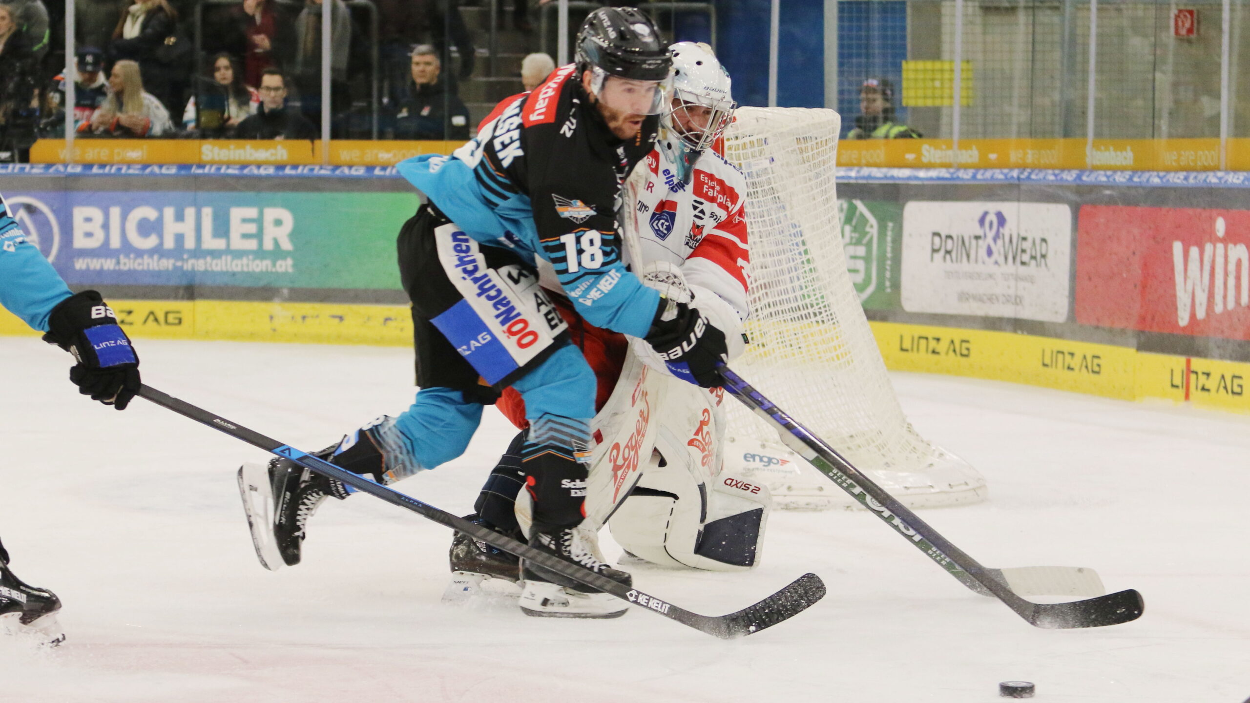 6T4A8954 28. Januar 2026 2560 × 1440 6T4A8954 Ken Ograjensek #18, Christopher Gibson #37, ICEHL Round 44 Black Wings Linz – HCB Südtirol, Linz AG Eisarena, © Puckfans.at / Andreas Robanser