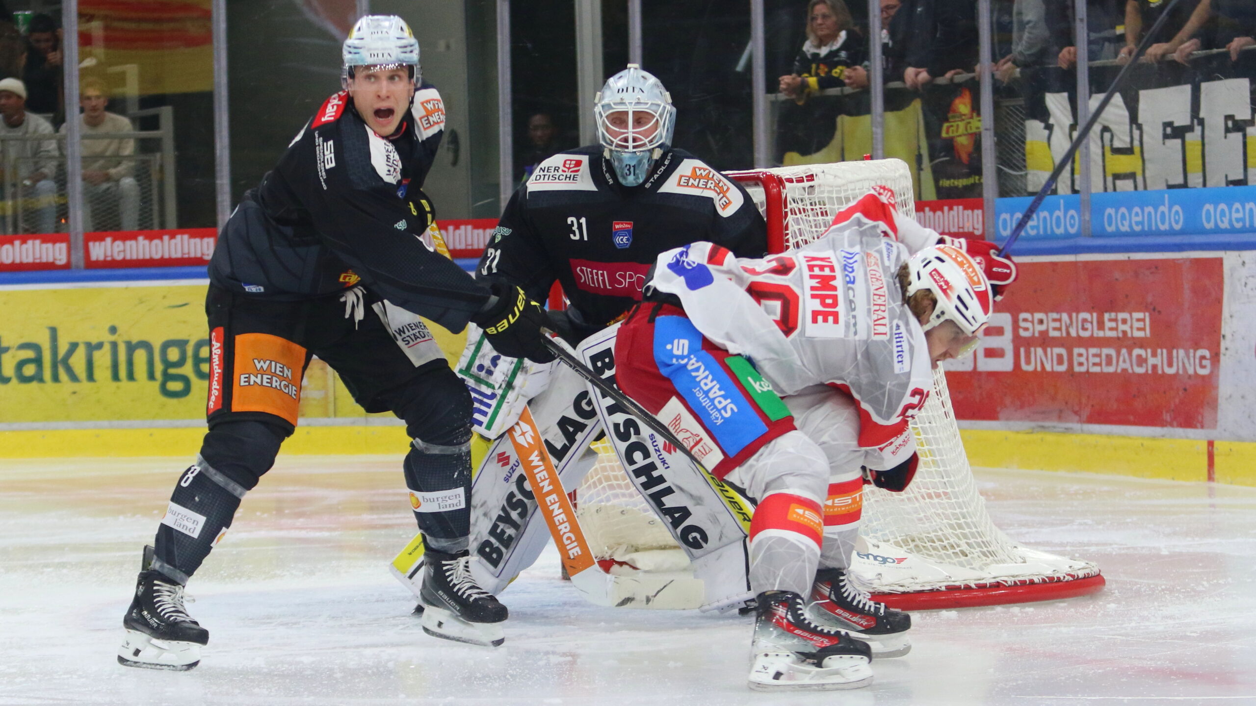 Evan Cowley #31, Mario Kempe #29, ICEHL Round11 Vienna Capitals – EC KAC, Steffl Arena, © Puckfans.at / Andreas Robanser