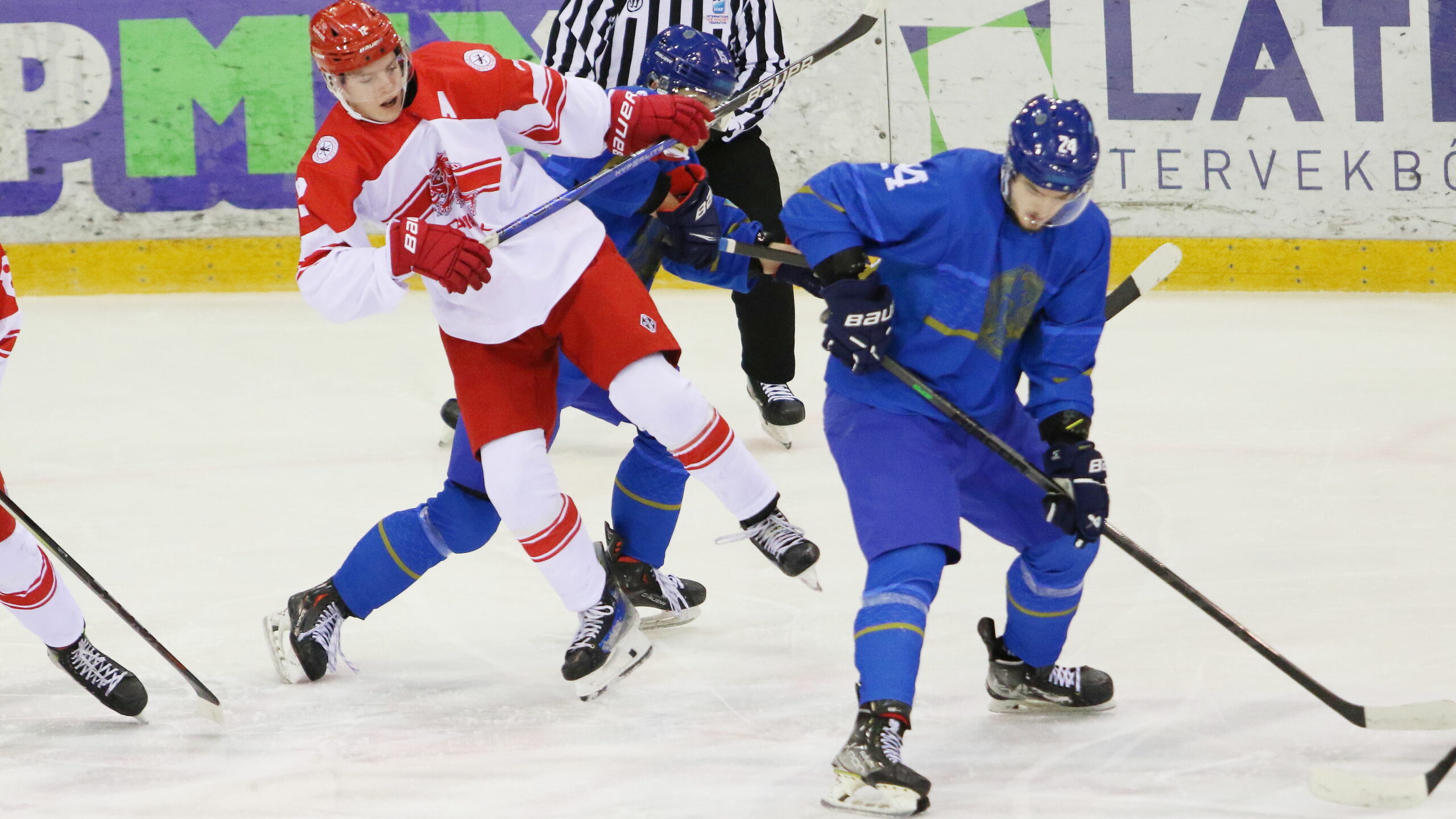 6T4A8985 11. Dezember 2023 2560 × 1440 6T4A8985 U20 IIHF World Championship Div 1A KAZ – DEN Oscar Fisker Mølgaard #12, Kirill Lyapunov #15, Yegor Smolyaninov #24 Tuskecsarnok Srena, Budapest, © Puckfans.at / Andreas Robanser