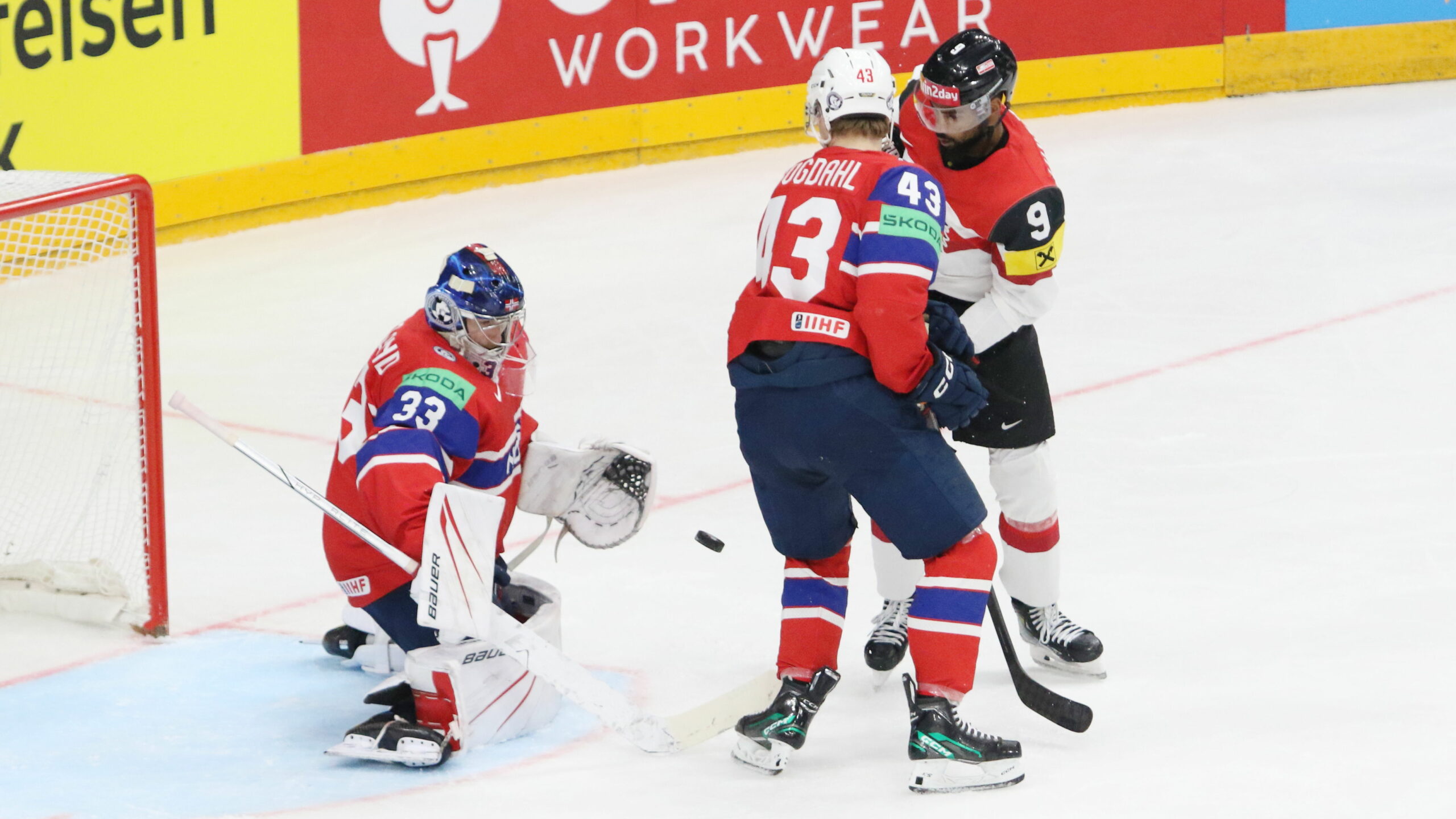 6T4A9110 19. Mai 2024 2560 × 1440 6T4A9110 IIHF World Championship 2024 NOR – AUT Henrik Haukeland #33, Ali Wukovits #9, Max Krogdahl #43 Prague Arena, Prague CZE © Puckfans.at / Andreas Robanser