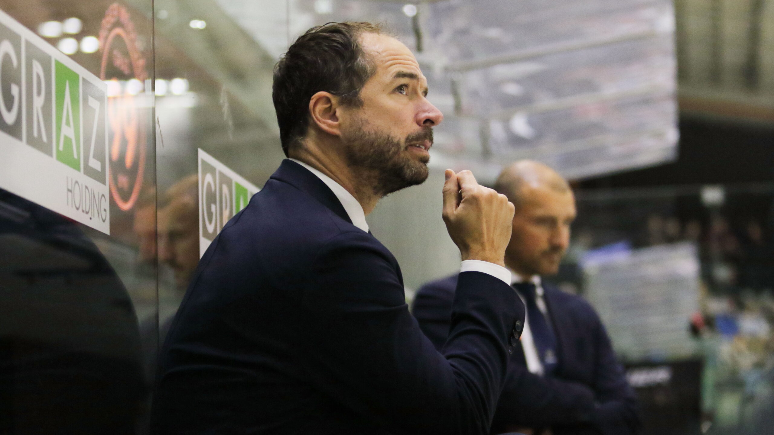 6T4A9230 19. Oktober 2025 2560 × 1440 6T4A9230 Graz99ers Head Coach Harry Lange, ICEHL Round 12 Graz99ers – EC KAC, Merkur Eisstadion, © Puckfans.at / Andreas Robanser