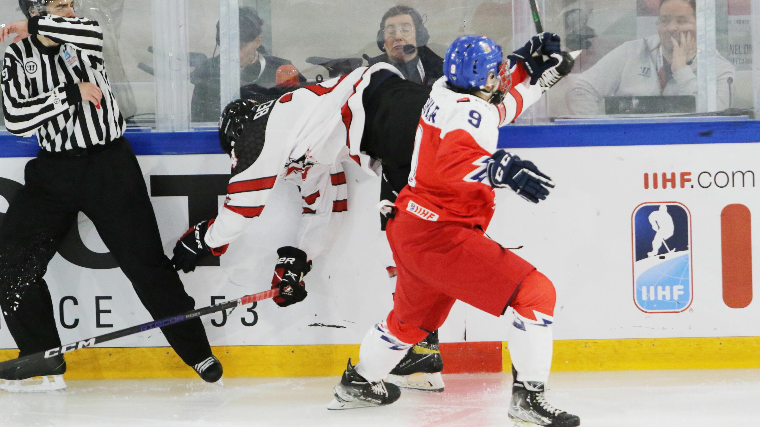 6T4A9379 25. April 2023 2560 × 1440 6T4A9379 IIHF U18 World Championship CZE – CAN Tristan Bertucci #24, Josef Eichler #9 Raiffeisen Arena, Porrentruy (Ajoie) © Puckfans.at / Andreas Robanser