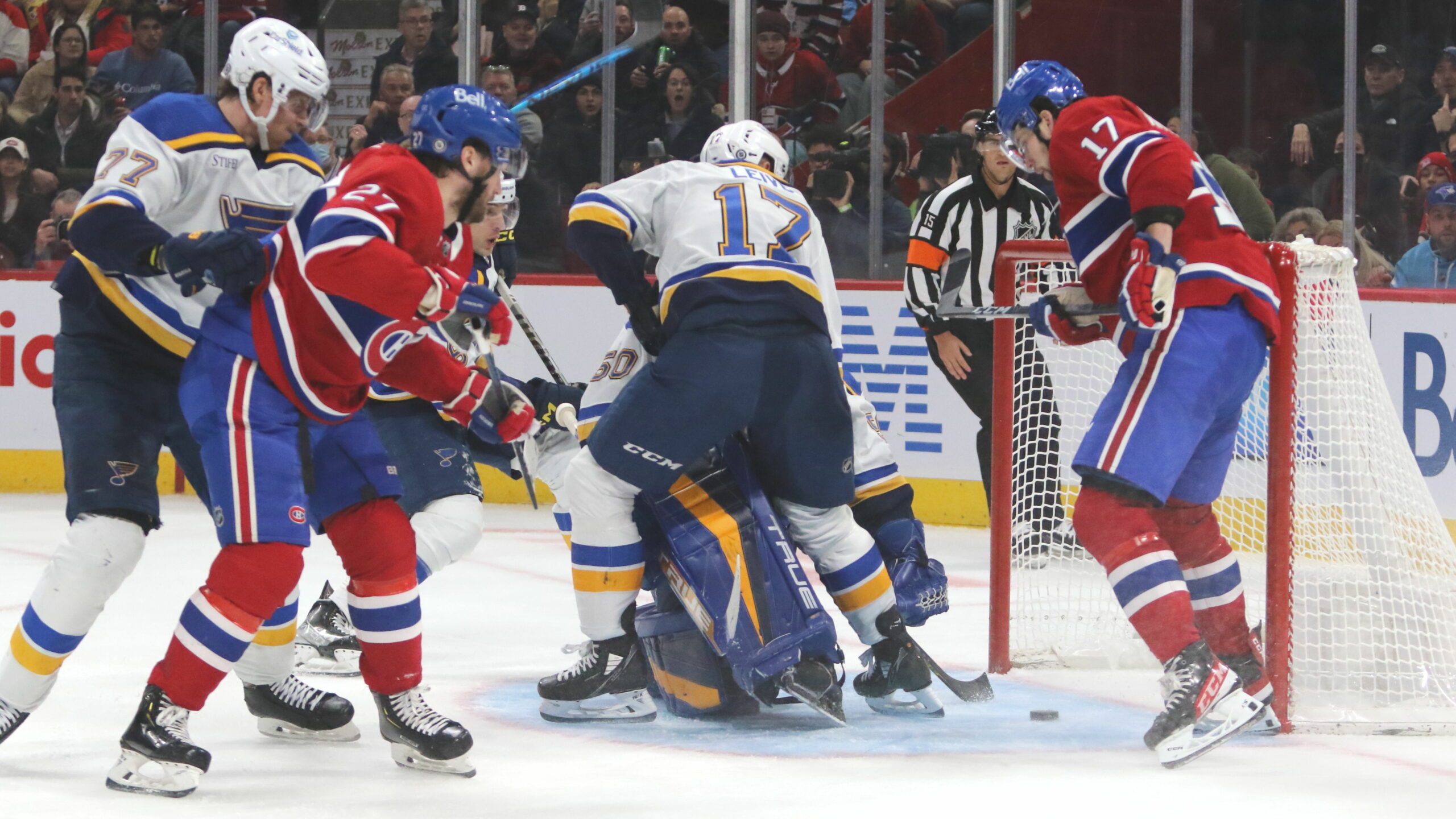 6T4A9455 8. Januar 2023 2560 × 1440 6T4A9455 NHL Montreal Canadiens : St. Louis Blues Niko Mikkola #77, Jonathan Drouin #27, Josh Leivo #17, Josh Anderson #17 Centre Bell, Montreal, © Puckfans.at / Andreas Robanser
