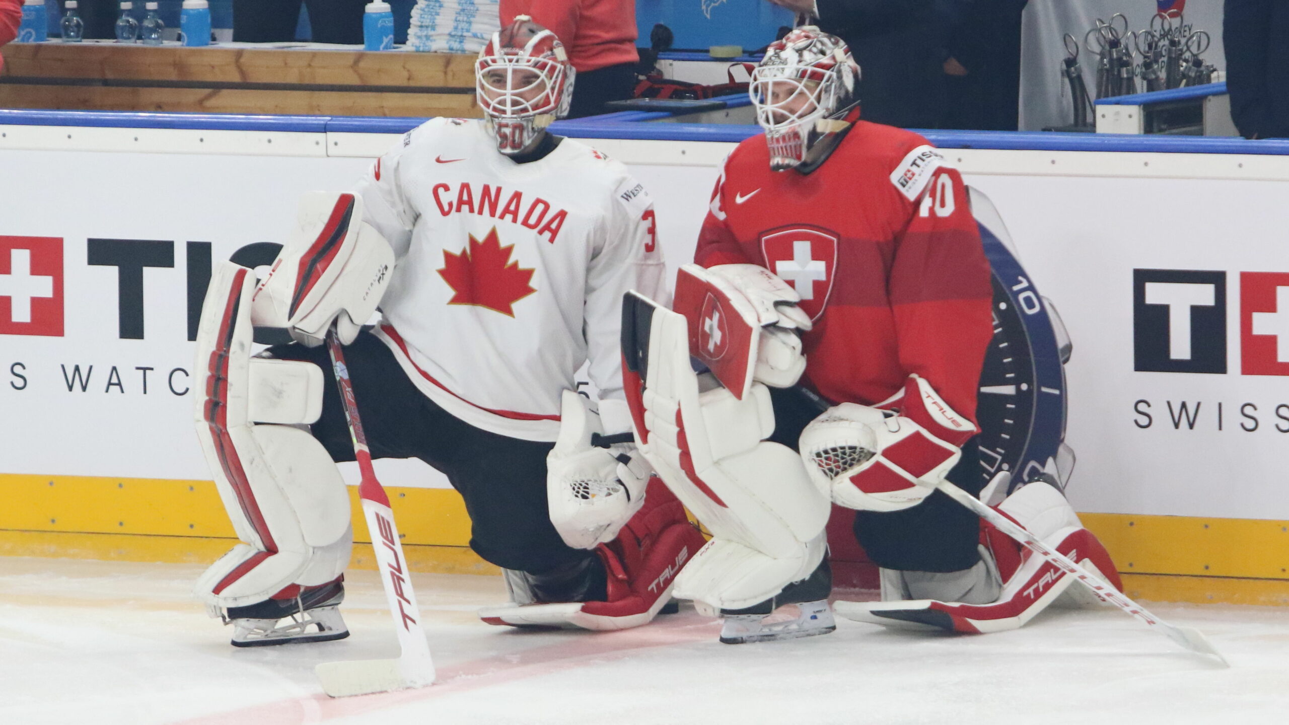 6T4A9471 19. Mai 2024 2560 × 1440 6T4A9471 IIHF World Championship 2024 SUI – CAN Nico Daws #35, Akira Schmid #40, Prague Arena, Prague CZE © Puckfans.at / Andreas Robanser