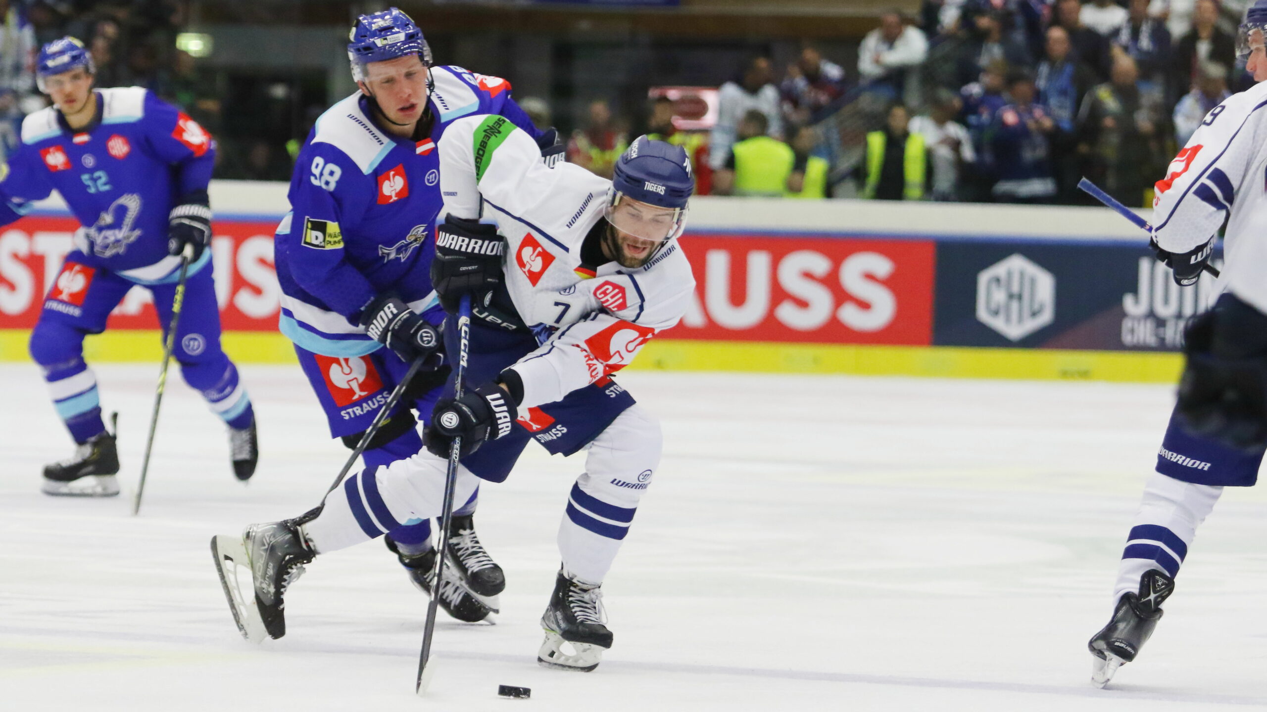 6T4A9555 4. Oktober 2022 2560 × 1440 6T4A9555 Champions Hockey League: EC VSV – Straubing Tigers Blaz Tomazevic #98, Taylor Leier #7 Villacher Stadthalle, © Puckfans.at/Andreas Robanser