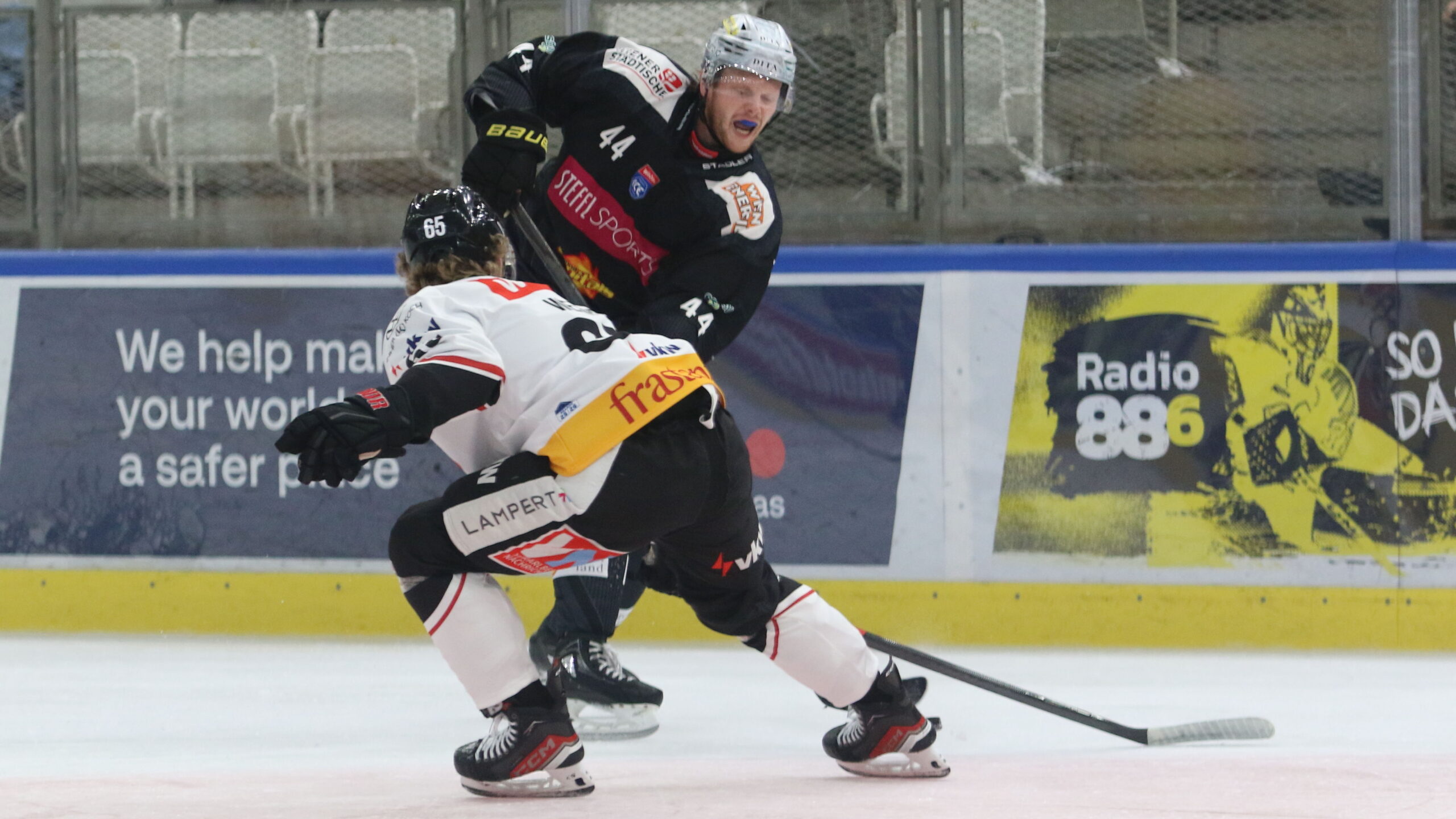 6T4A9568 25. Oktober 2025 2560 × 1440 6T4A9568 Carter Souch #44, Laurin Wempe #65, ICEHL Round 13 Vienna Capitals – Pioneers Vorarlberg, Steffl Arena, © Puckfans.at / Andreas Robanser