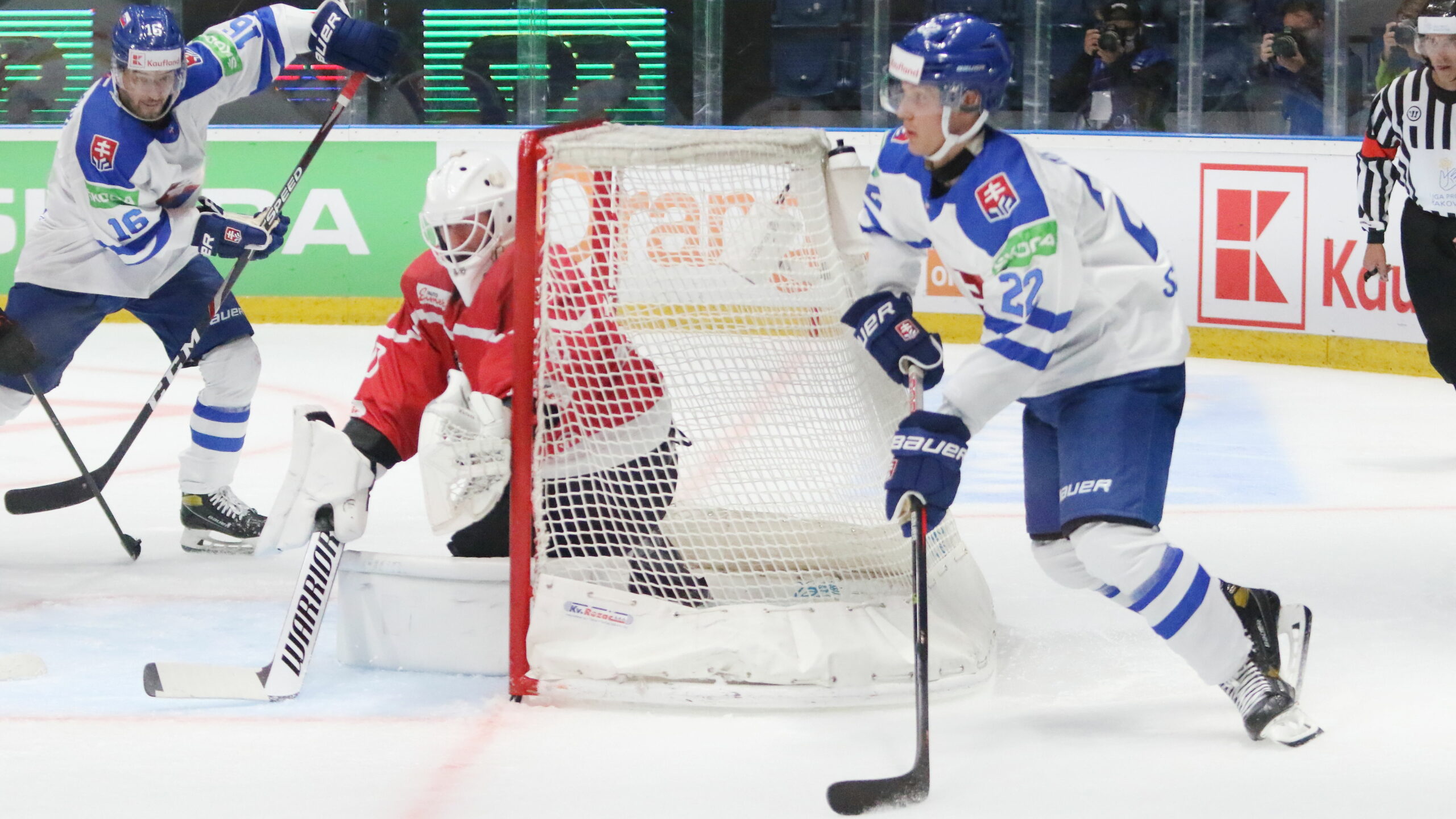 6T4A9600 26. August 2021 2560 × 1440 6T4A9600 Olympic Qualification Men AUT – SVK Robert Lantosi #16, Davis Kickert #30, Samuel Knazko #22 Zimny Stadion Ondreja Nepelu © Puckfans.at/Andreas Robanser