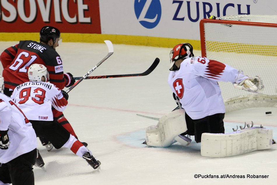 6T4A9715 23. Mai 2019 950 × 635 6T4A9715 IIHF World Championship, QF CAN – SUI Lino Martschini #93, Mark Stone #61, Leonardo Genoni #63 Steel Arena, Kosice ©Puckfans.at/Andreas Robanser