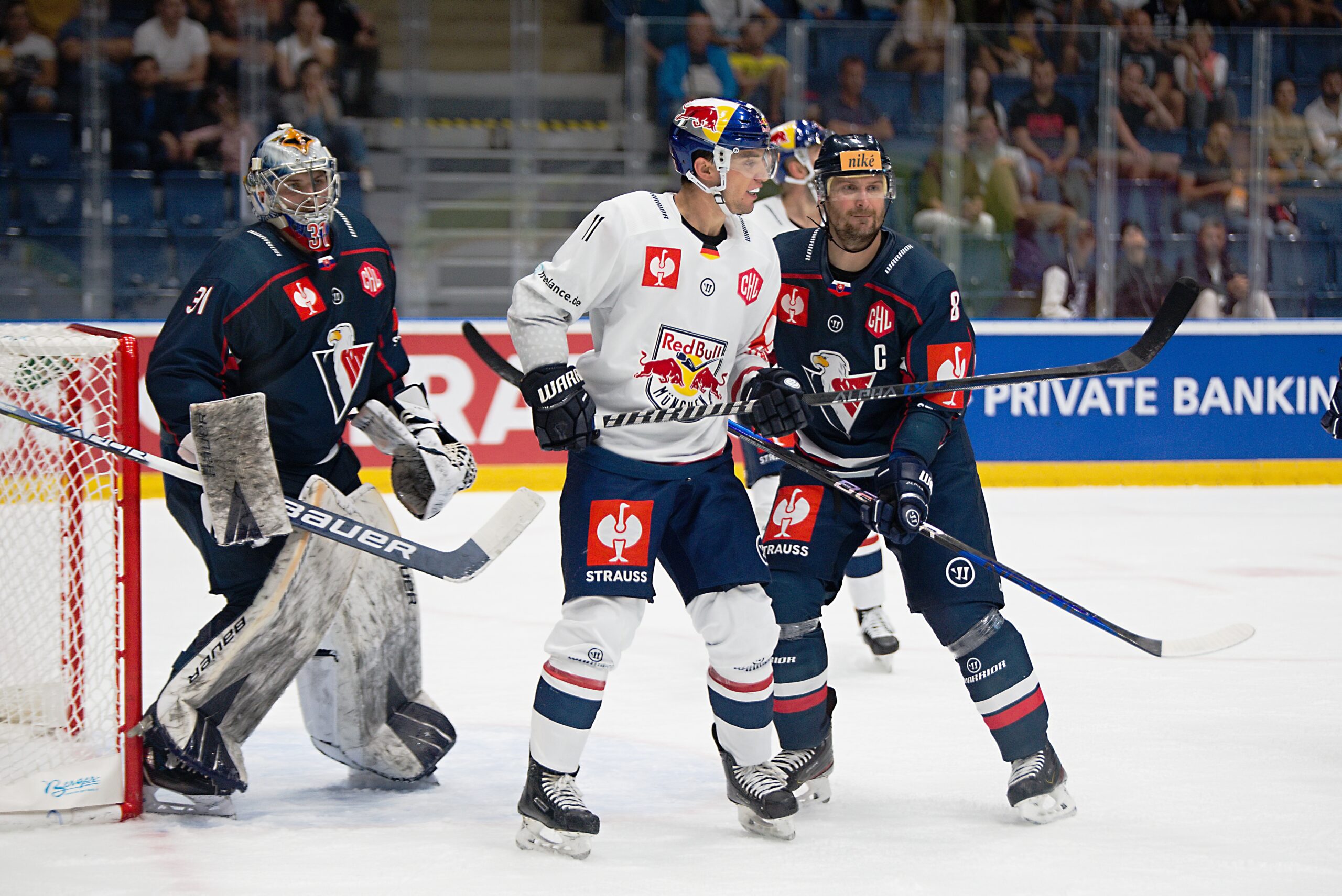 _F9A2749 3. September 2022 2560 × 1711 _F9A2749 Champions Hockey League: HC Slovan Bratislava – EHC Red Bull München Samuel Hlavaj #31, Frederik Tiffels #11, Michal Sersen #8 Ondrej Nepela Arena, © Puckfans.at/Zuzana Sefcovicova