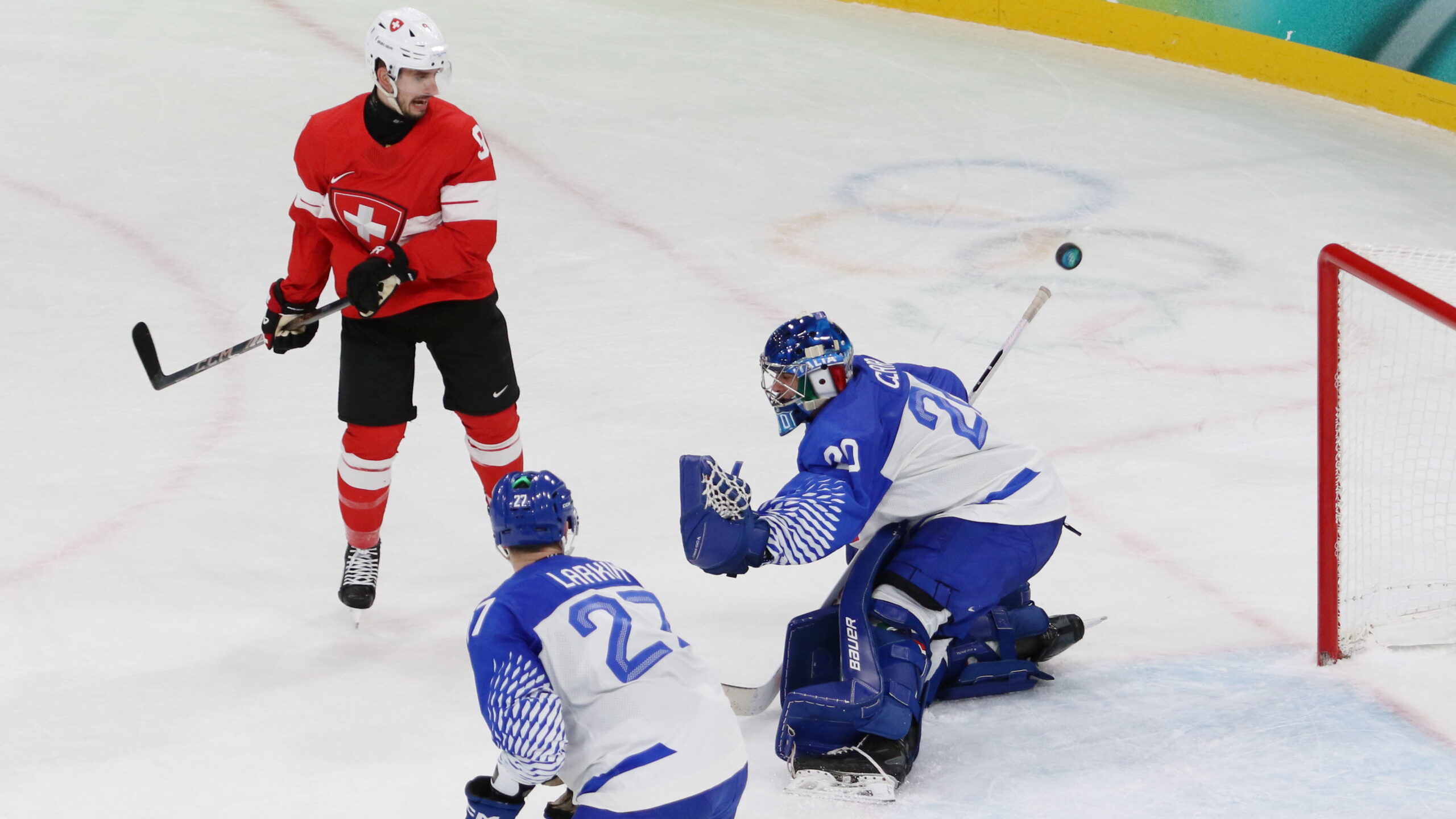 a6T4A1760 17. Februar 2026 2560 × 1440 a6T4A1760 Damien Riat #9, Damian Clara#20, Thomas Larkin #27, Olympic Games 2026 Mens QG SUI – ITA, Milano Rho Ice Arena, © Puckfans.at / Andreas Robanser