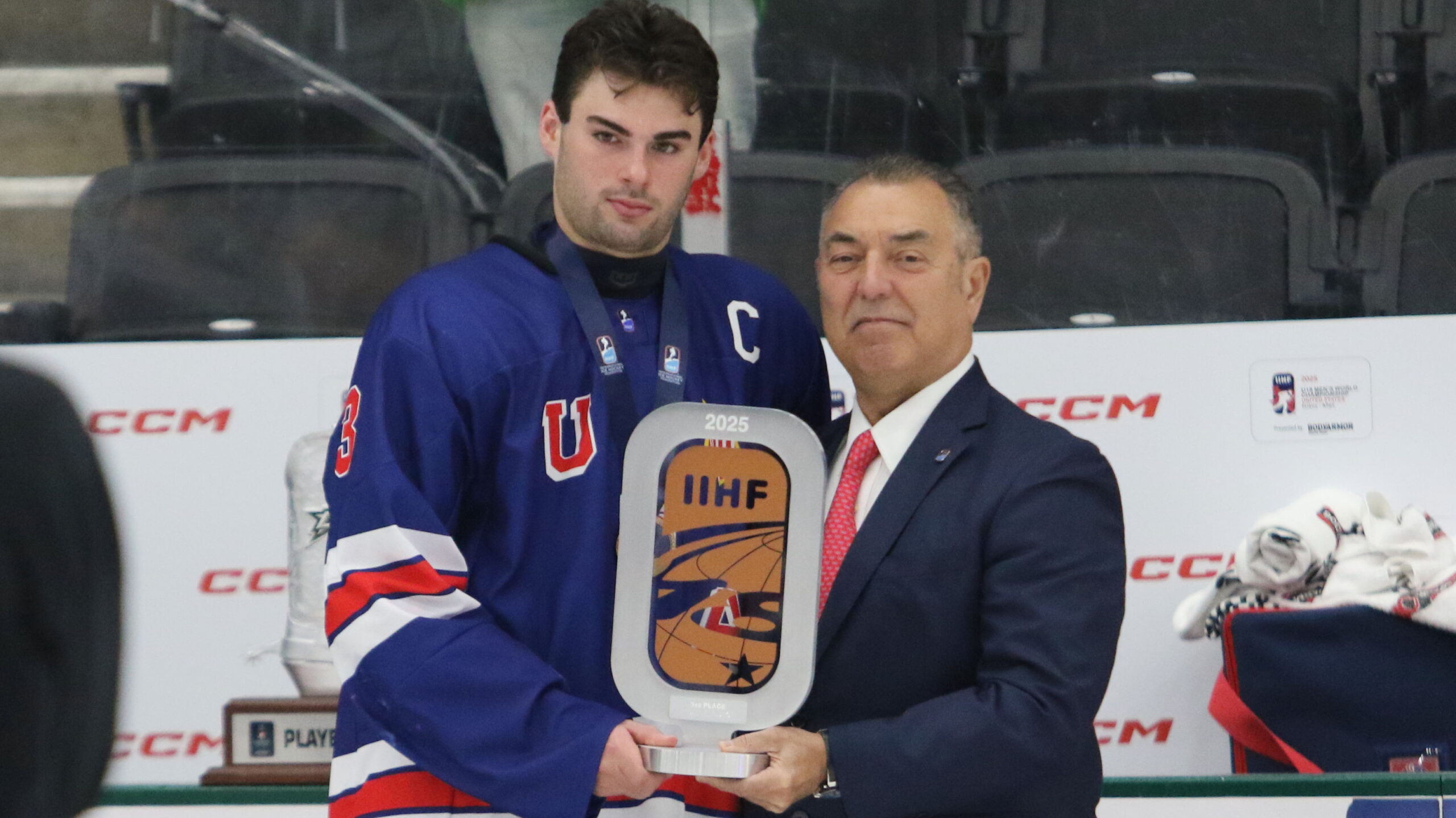 a6T4A1887 4. Mai 2025 2560 × 1440 a6T4A1887 Asher Barnett #13, Frank Gonzalez IIHF, Bronze Game USA – SVK, IIHF U18 Worlds 2025, Comerica Center, Frisco © Puckfans.at / Andreas Robanser