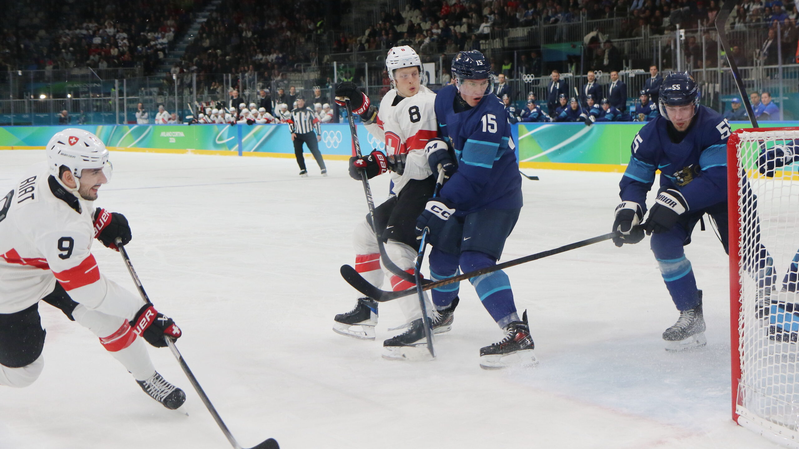 a6T4A2089 18. Februar 2026 2560 × 1440 a6T4A2089 Damien Riat #9, Simon Knak #8, Anton Lundell #15, Rasmus Ristolainen #55, Olympic Games 2026 Mens QF FIN – SUI, Milano Rho Ice Park, © Puckfans.at / Andreas Robanser