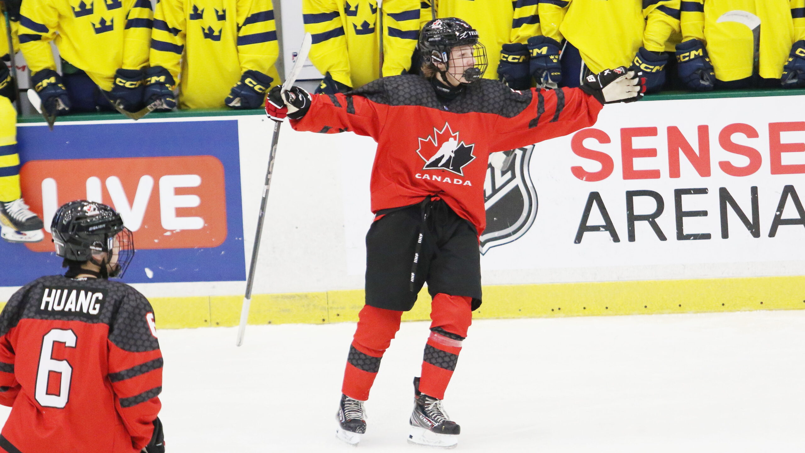 Xavier Villeneuve #2, Alex Huang #6, Final Game CAN – SWE, IIHF U18 Worlds 2025, Comerica Center, Frisco © Puckfans.at / Andreas Robanser