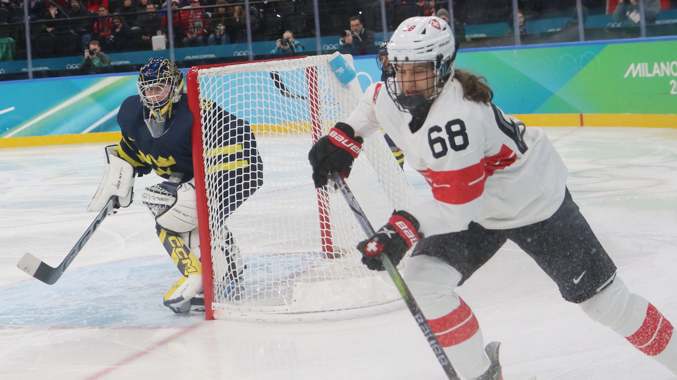 Ebba Svensson Träff #1, Leoni Balzer #68, Olympic Games 2026 Womens Bronze Medal Game SUI – SWE, Milano Santa Giulia Arena, © Puckfans.at / Andreas Robanser