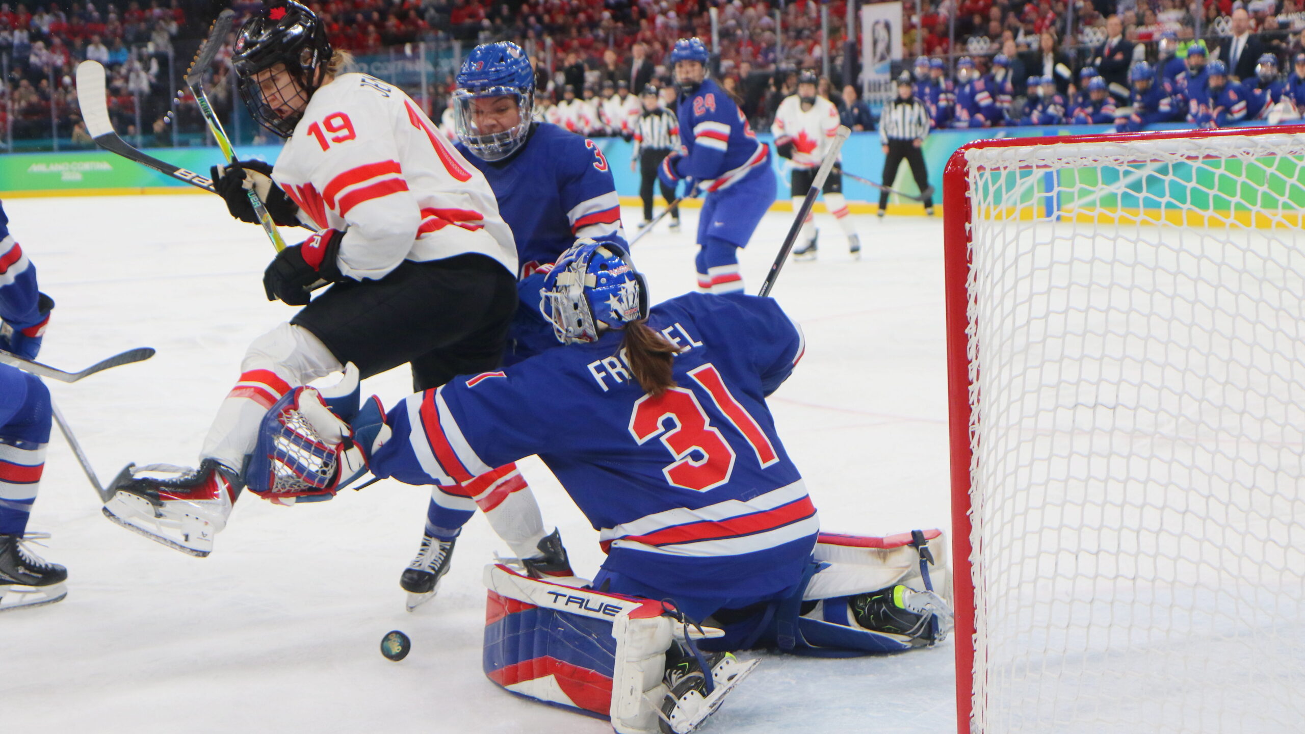 Brianne Jenner #19, Cayla Barnes #3, Aerin Frankel #31, Olympic Games 2026 WomensGold Medal Game USA – CAN, Milano Santa Giulia Arena, © Puckfans.at / Andreas Robanser