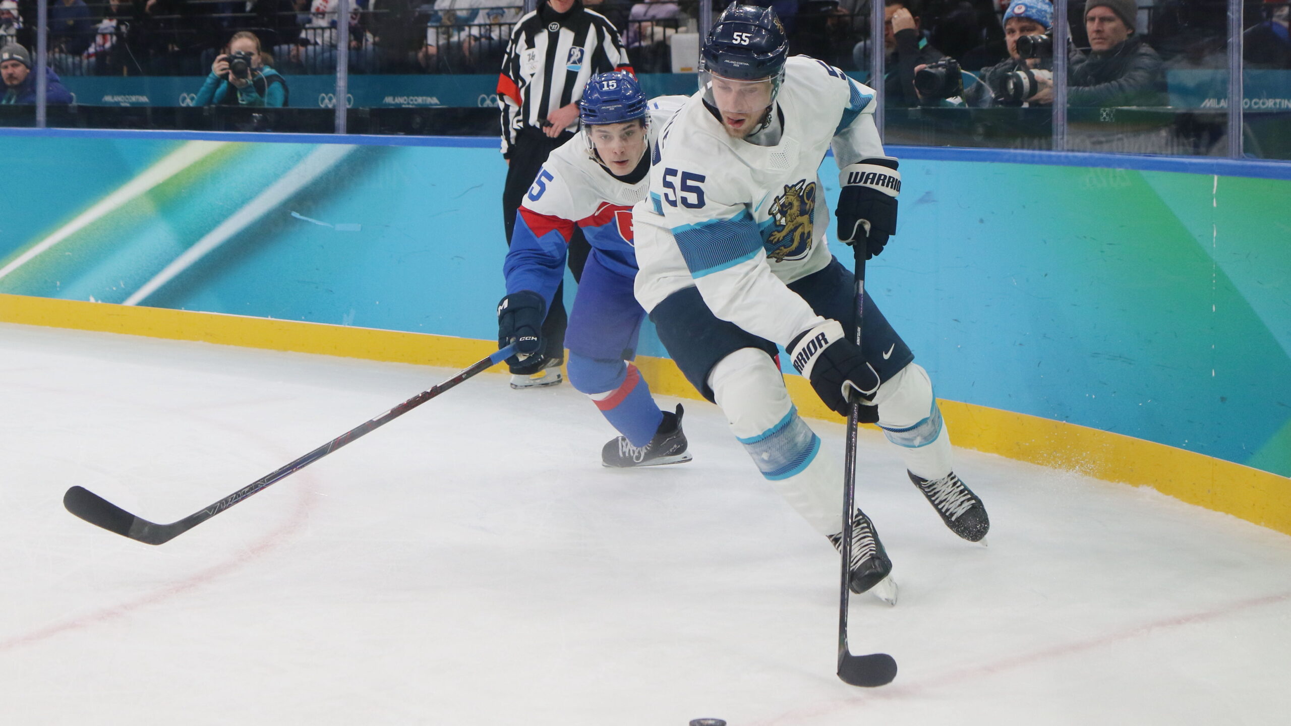 Dalibor Dvorský #15, Rasmus Ristolainen #55, Olympic Games 2026 Mens Bronze Medal Game SVK – FIN, Milano Santa Giulia Arena, © Puckfans.at / Andreas Robanser
