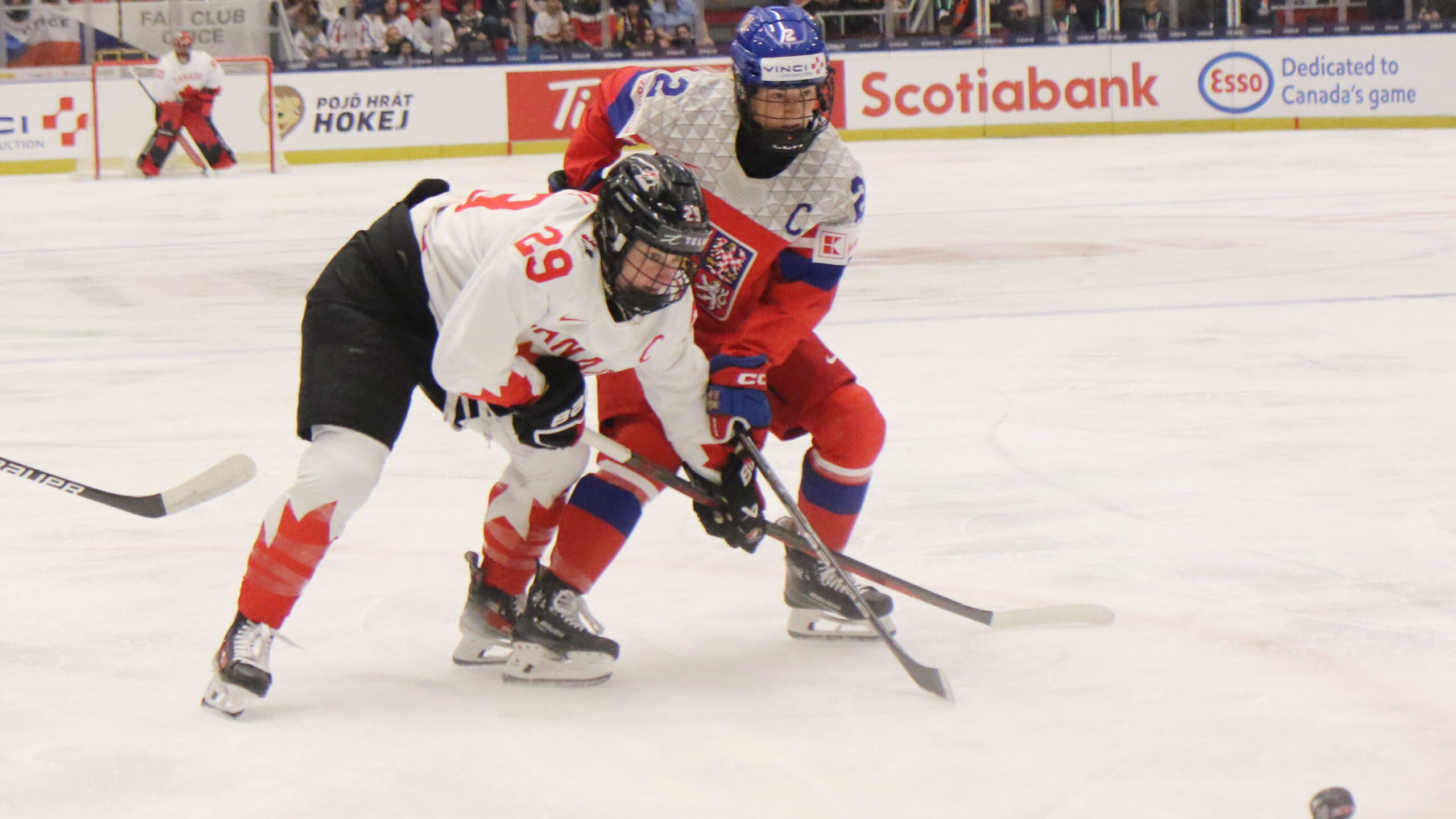 a6T4A4897 14. April 2025 2560 × 1440 a6T4A4897 Marie-Philip Poulin #29, Aneta Tejralova #2, CZE – CAN, IIHF Women’s World 2025, Budvar Arena, Ceske Budejovice © Puckfans.at / Andreas Robanser
