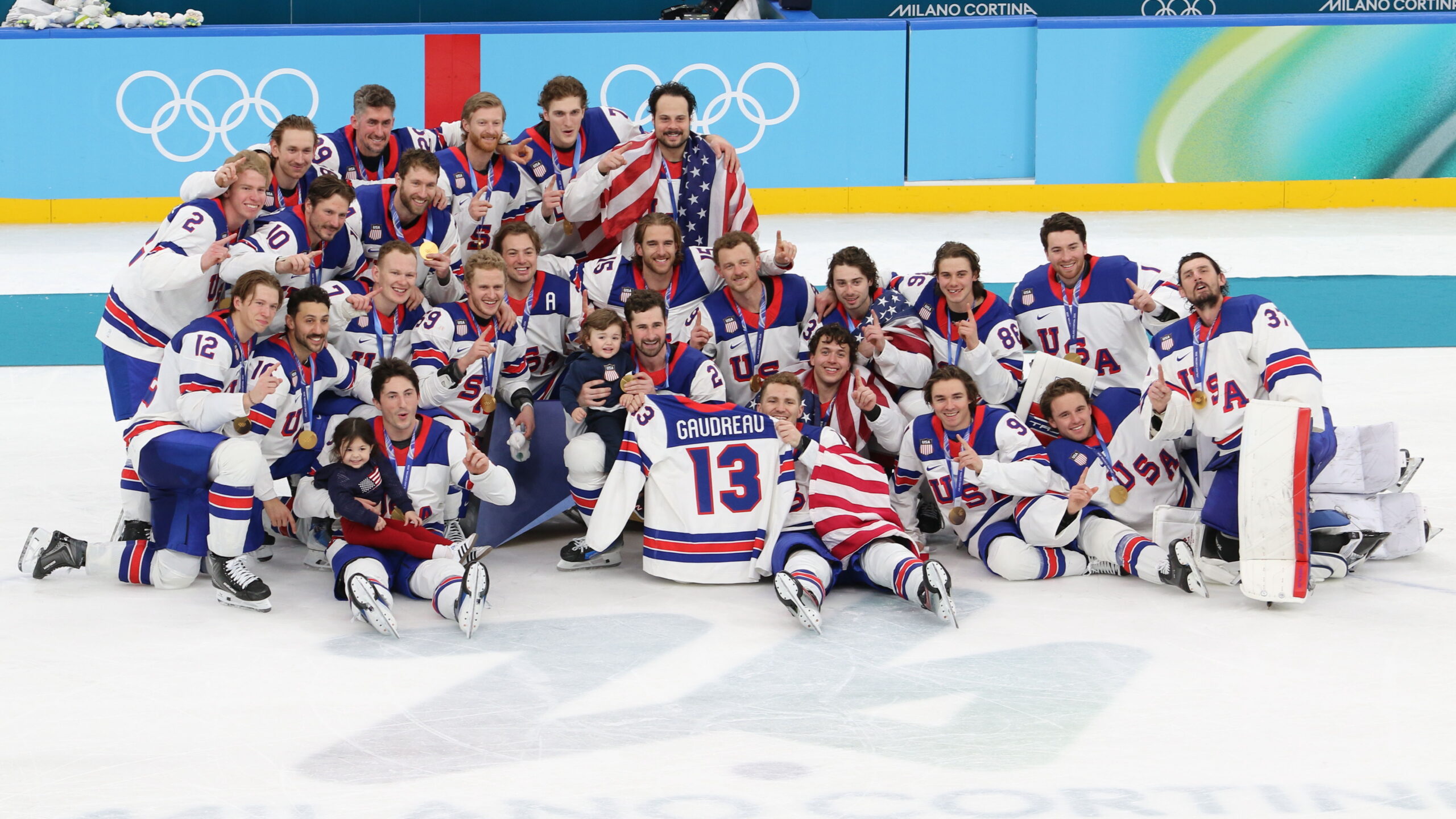 Olympic Gold Champion Team USA, Olympic Games 2026 Mens Gold Medal Game CAN – USA, Milano Santa Giulia Arena,, Olympic Games 2026 Mens Gold Medal Game CAN – USA, Milano Santa Giulia Arena, © Puckfans.at / Andreas Robanser