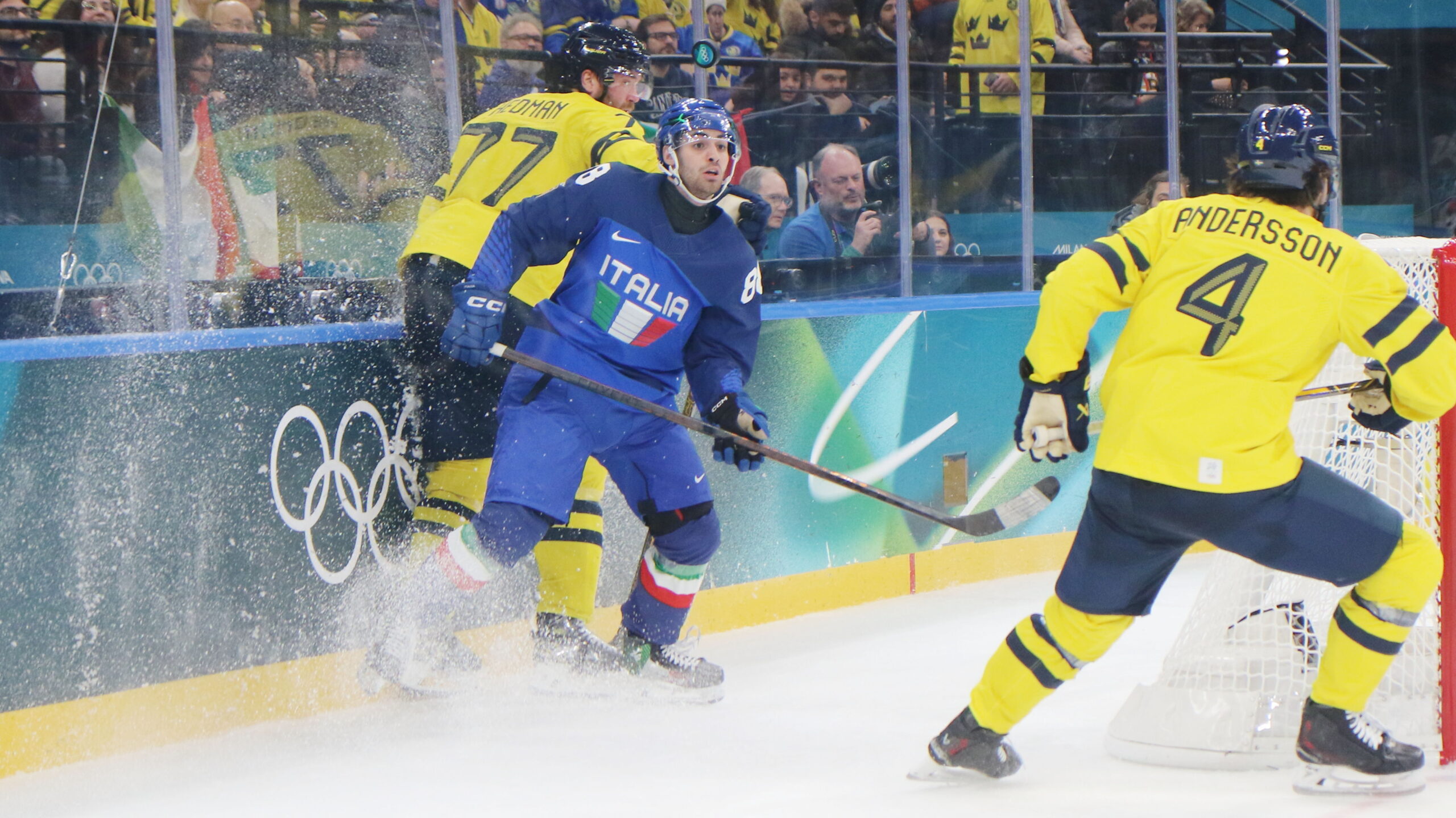a6T4A7036 11. Februar 2026 2560 × 1440 a6T4A7036 Victor Hedman #77, Tommaso De Luca #88, Rasmus Andersson #4, Olympic Games 2026 Mens Hockey SWE – ITA, Milano Santa Giulia Arena, © Puckfans.at / Andreas Robanser