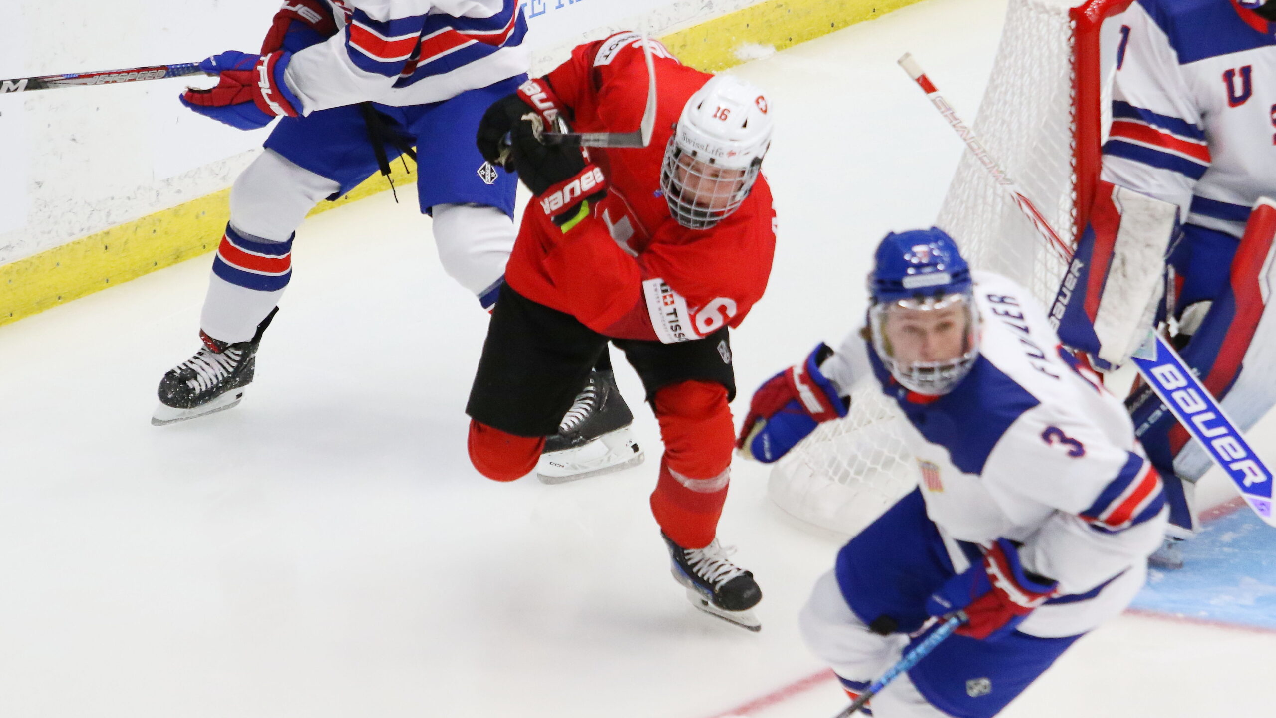 a6T4A7391 25. April 2025 2560 × 1440 a6T4A7391 Thierry Andrey #16, SUI – USA, IIHF U18 Worlds 2025, Comerica Center, Frisco © Puckfans.at / Andreas Robanser