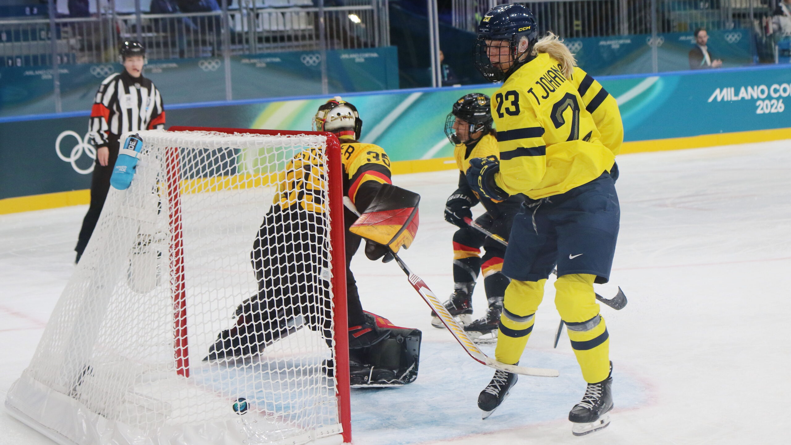 a6T4A9280 5. Februar 2026 2560 × 1440 a6T4A9280 Sandra Abstreiter #35, Thea Johansson #23, Olympic Games 2026 Womens Hockey SWE – GER, Milano Rho, © Puckfans.at / Andreas Robanser