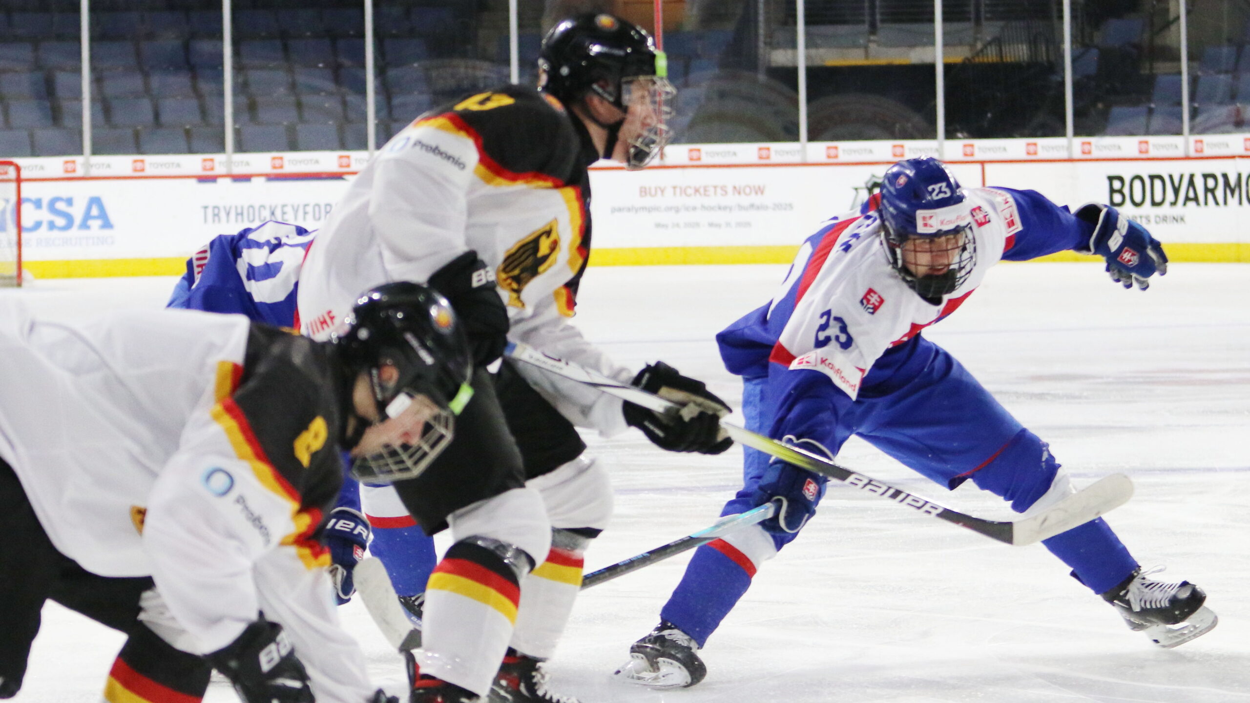 Andreas Grin #13, Kristian Kriska #23, QF SVK – GER, IIHF U18 Worlds 2025, Credit Union of Texas Event Center © Puckfans.at / Andreas Robanser