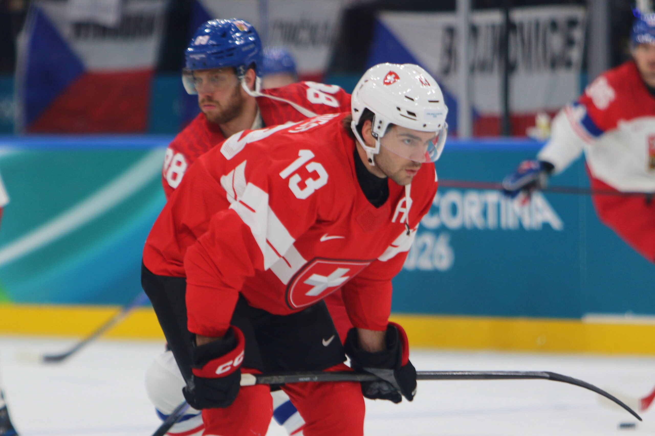 Nico Hischier #13, David Pastrnak #88, Olympic Games 2026 Mens Hockey SUI – CZE , Santa Giulia Arena, Milano © Puckfans.at / Andreas Robanser