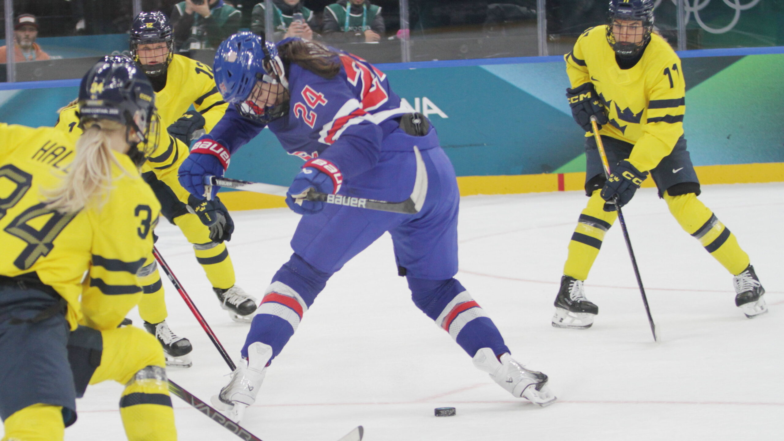 Mira Hallin #34, Maja Nylén Persson #12, Joy Dunne #24, Josefin Bouveng #11, Olympic Games 2026 Womens Semifinal USA – SWE, Santa Giulia Arena, Milano © Puckfans.at / Andreas Robanser