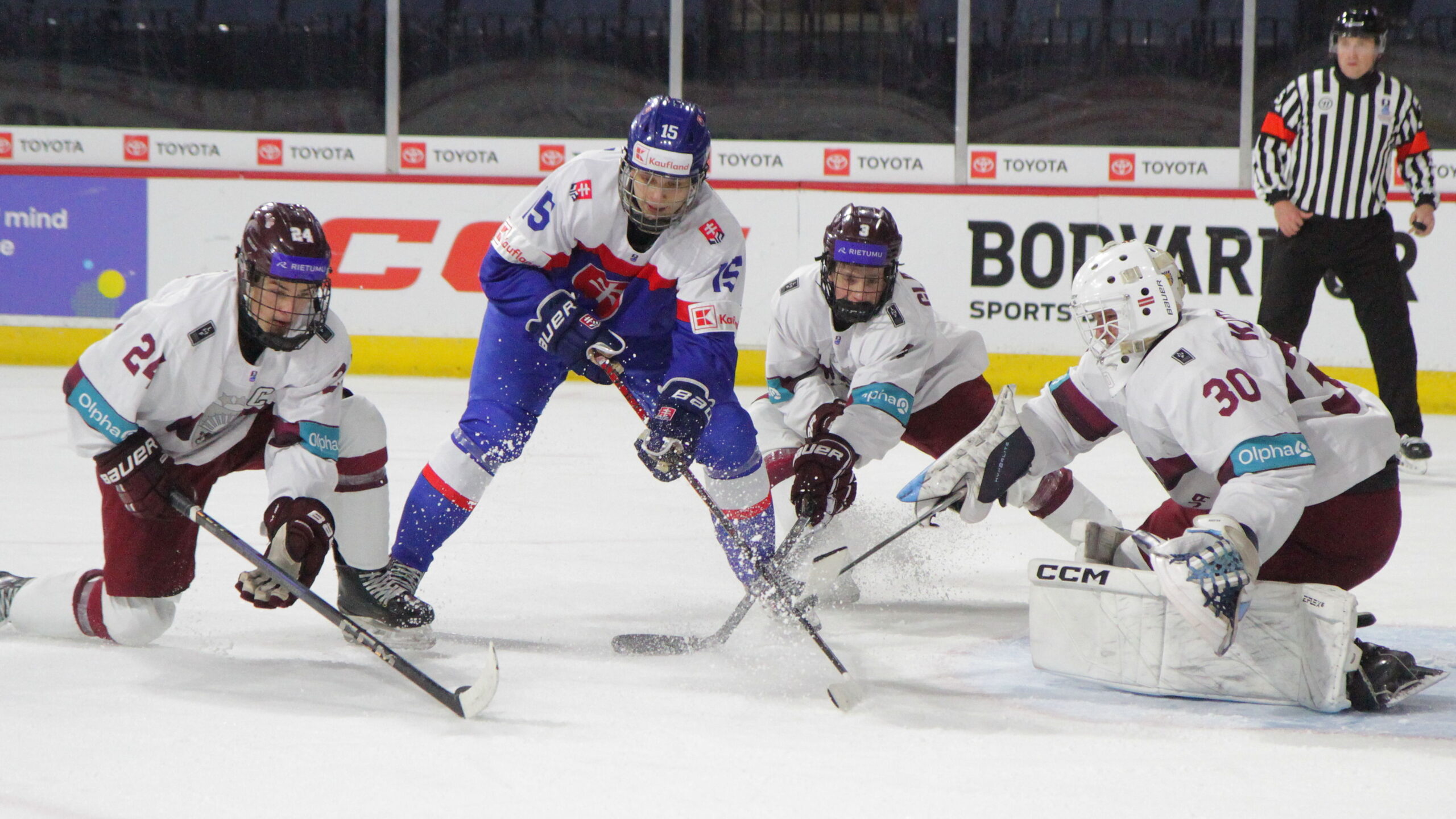 aIMG_8460 28. April 2025 2560 × 1440 aIMG_8460 Daniels Serkins #24, Andreas Straka #15, Janis Glaznieks #3, Ivans Kufterins #30, SVK – LAT, IIHF U18 Worlds 2025, Credit Union of Texas Event Center © Puckfans.at / Andreas Robanser