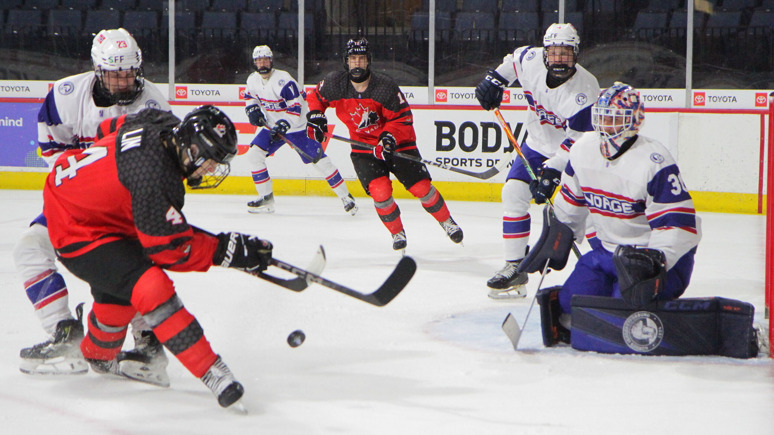 aIMG_8545 29. April 2025 2560 × 1440 aIMG_8545 18can04 #4, William Hille Olsen #23, Ethan Czata #12, Felix Timraz-Westin #30, CAN – NOR, IIHF U18 Worlds 2025, Credit Union of Texas Event Center © Puckfans.at / Andreas Robanser