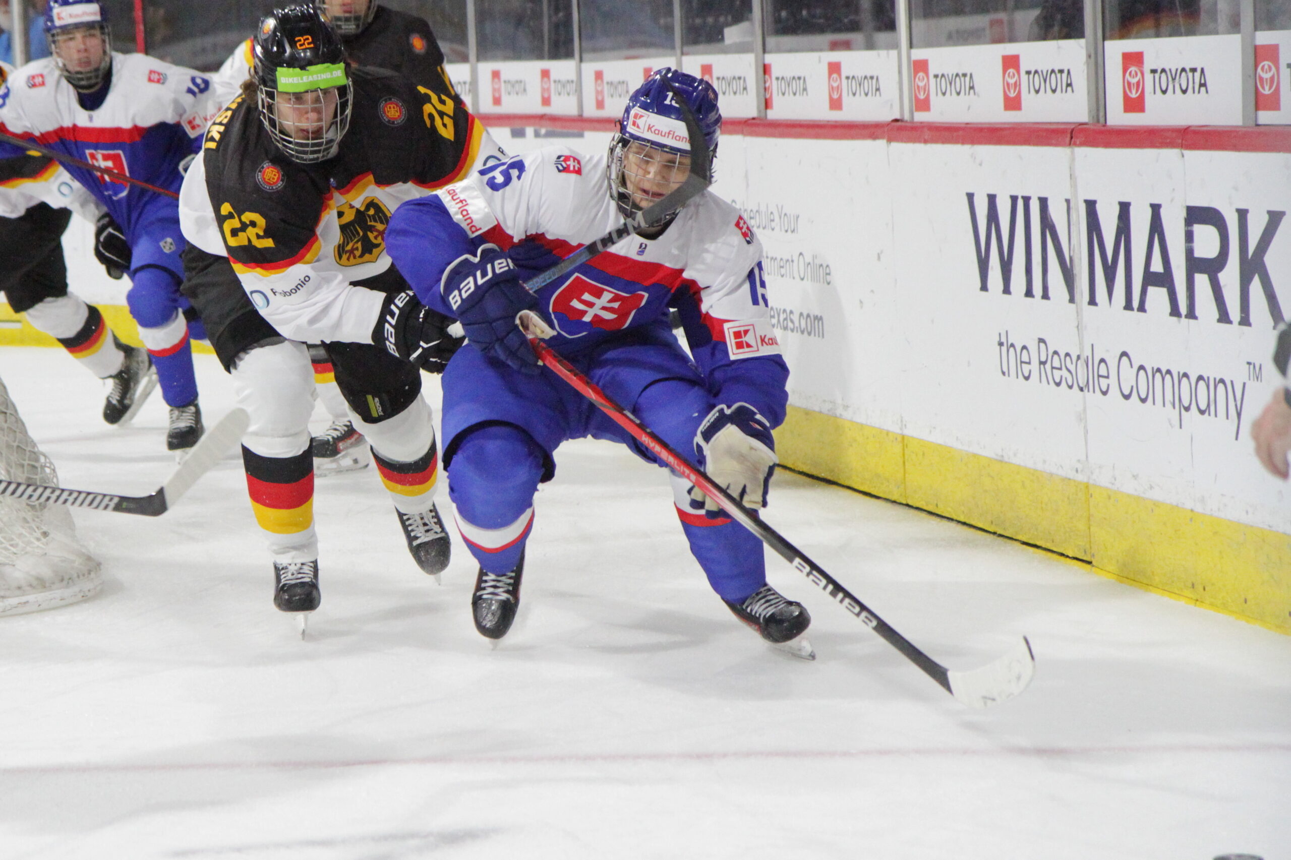 David Lewandowski #22, Andreas Straka #15, QF SVK – GER, IIHF U18 Worlds 2025, Credit Union of Texas Event Center © Puckfans.at / Andreas Robanser