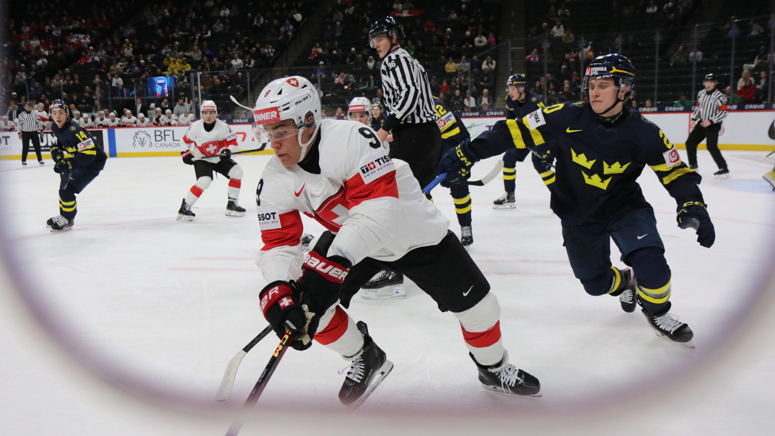 Nolan Cattin #9, Alfons Freij #20, World Juniors 2026 SWE – SUI, Grand Casino Arena, Saint Paul © Puckfans.at / Andreas Robanser