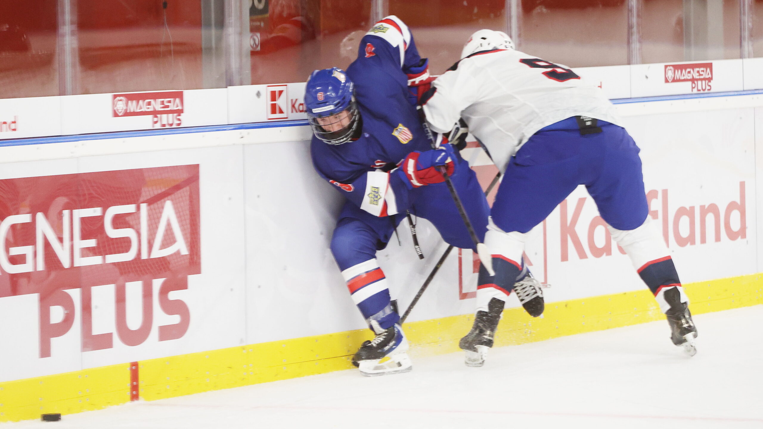 Dayne Beuker #8, Sondre Berg #9, Pre Game U18 World Championship 2026 USA – NOR, Vladimír Dzurilla Arena, Bratislava, © Puckfans.at / Andreas Robanser