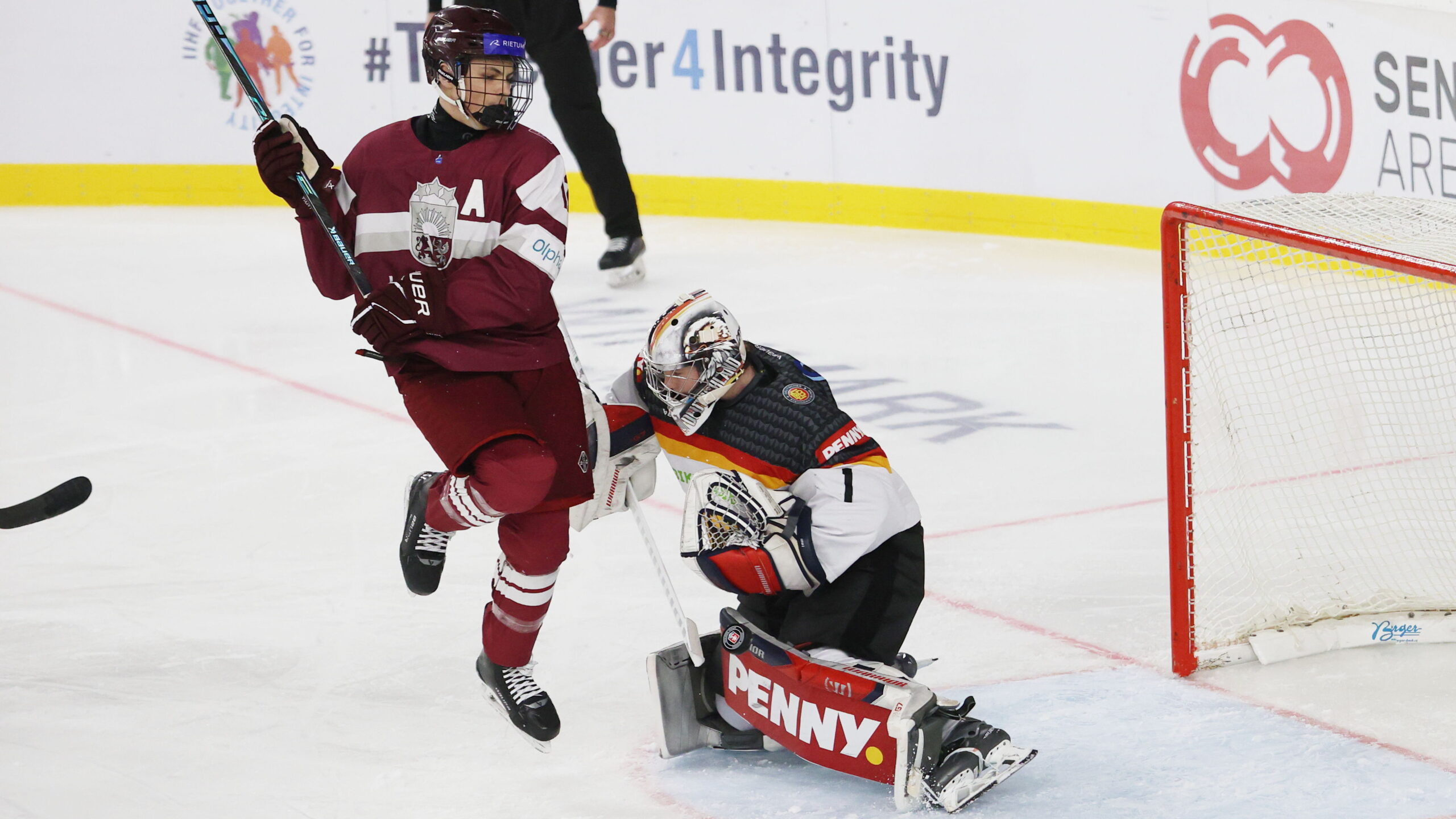 Daniels Reidzans #12, Max Bolle #1, Pre Game U18 World Championship 2026 LAT – GER, Vladimír Dzurilla Arena, Bratislava, © Puckfans.at / Andreas Robanser