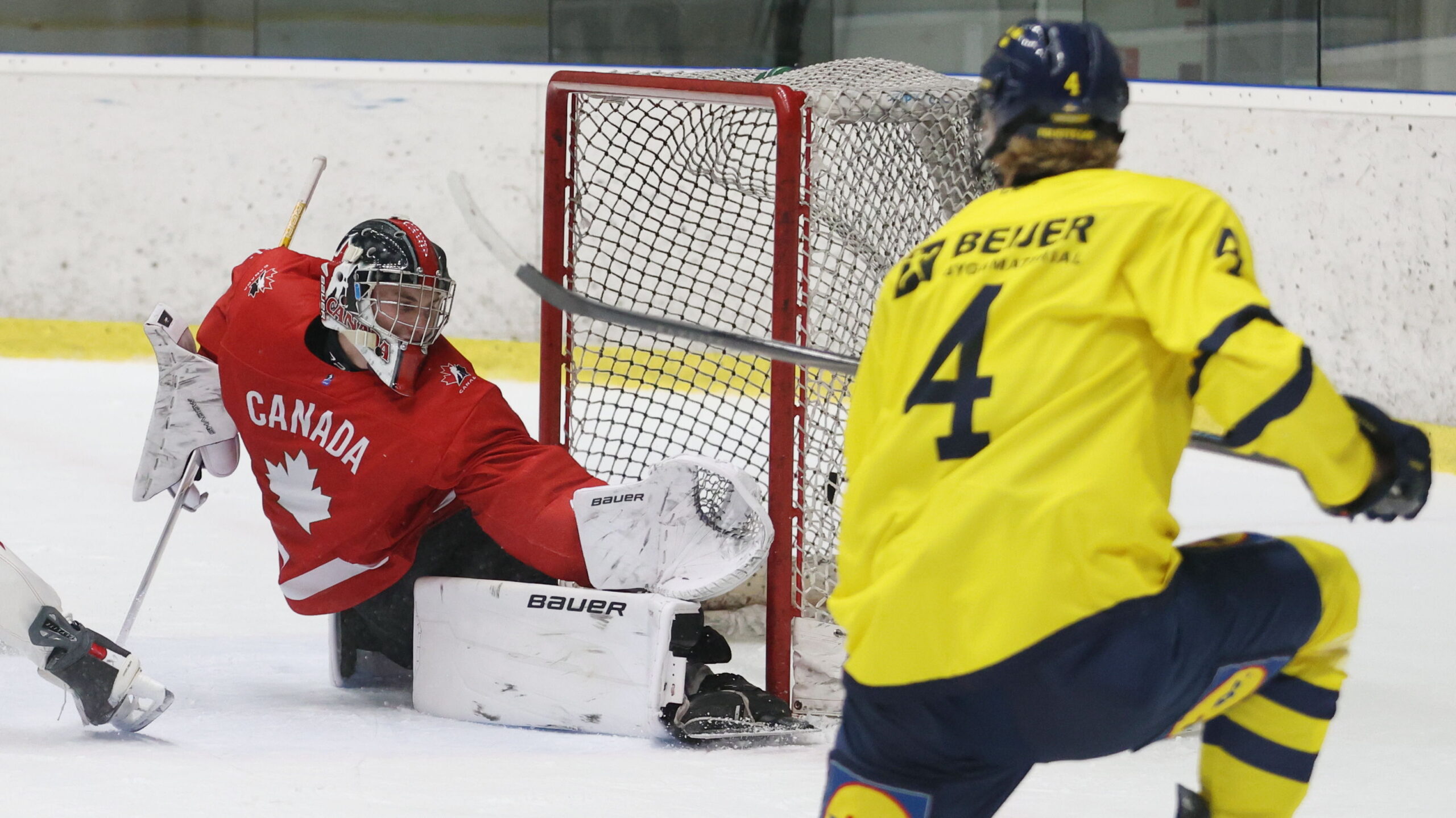 Gavin Betts #1, Malte Gustafsson #4, Pre Game U18 World Championship 2026 CAN – SWE, Ondrej Nepela Arena B, Bratislava, © Puckfans.at / Andreas Robanser