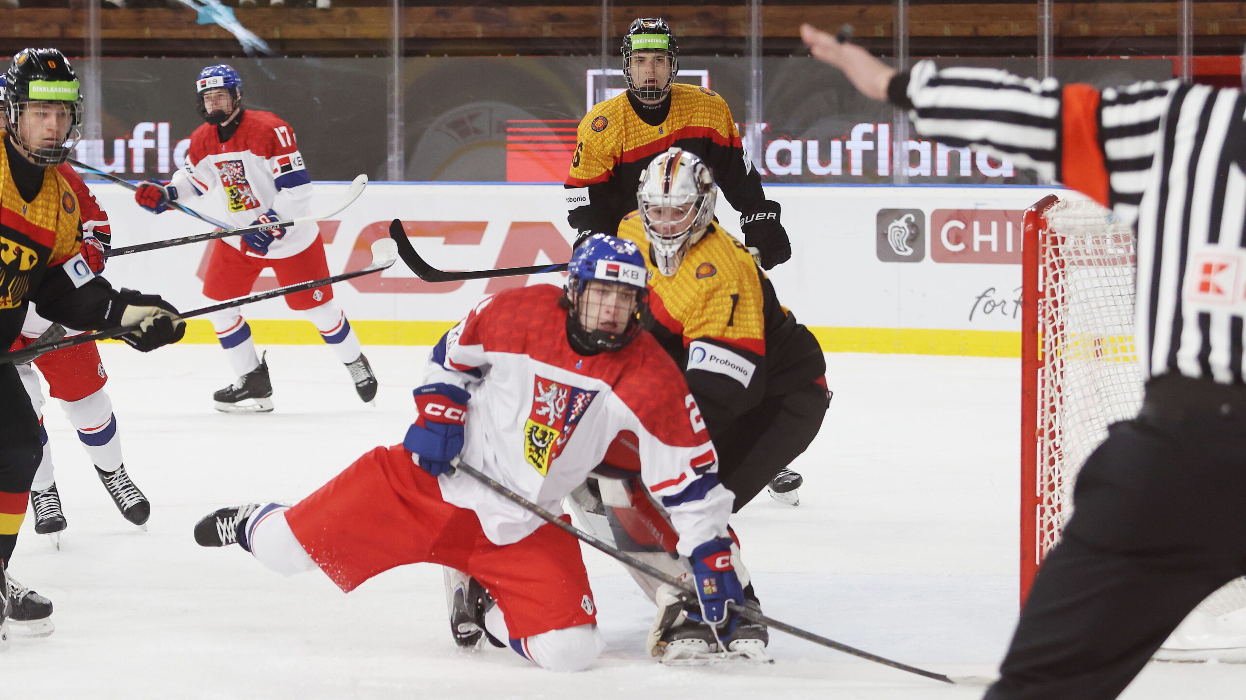 Simon Katolicky #24, Max Bolle #1, Tobias Krämer #26, IIHF U18 World Championship 2026 GER – CZE, Vladimír Dzurilla Arena, Bratislava, © Puckfans.at / Andreas Robanser