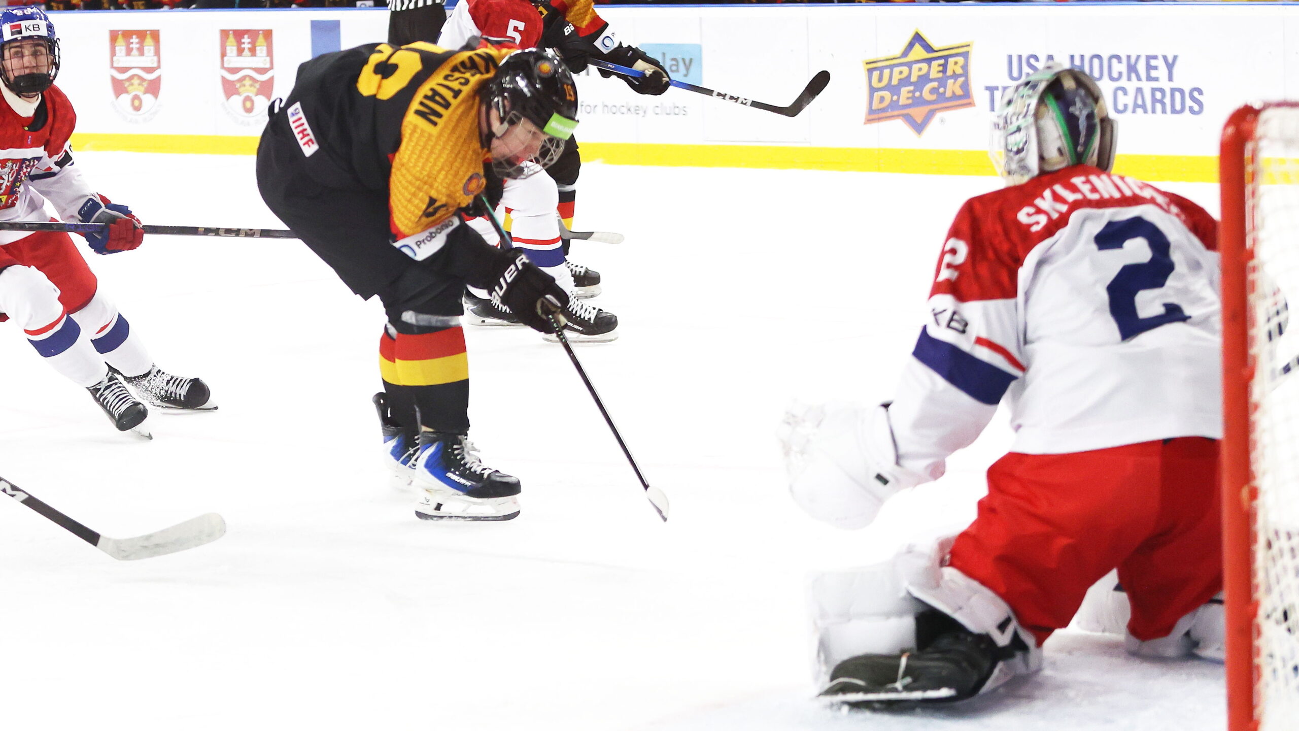 Tobias Krestan #19, Marek Sklenicka #2, IIHF U18 World Championship 2026 GER – CZE, Vladimír Dzurilla Arena, Bratislava, © Puckfans.at / Andreas Robanser