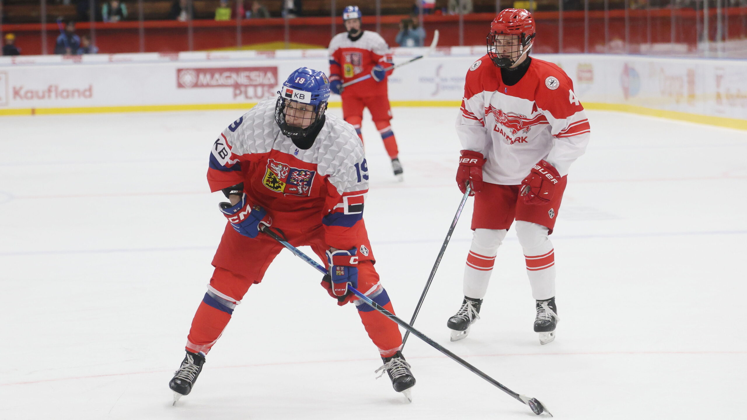 Jan Trefný #19, Max Kramer #4, IIHF U18 World Championship 2026 CZE – DEN, Vladimír Dzurilla Arena, Bratislava, © Puckfans.at / Andreas Robanser