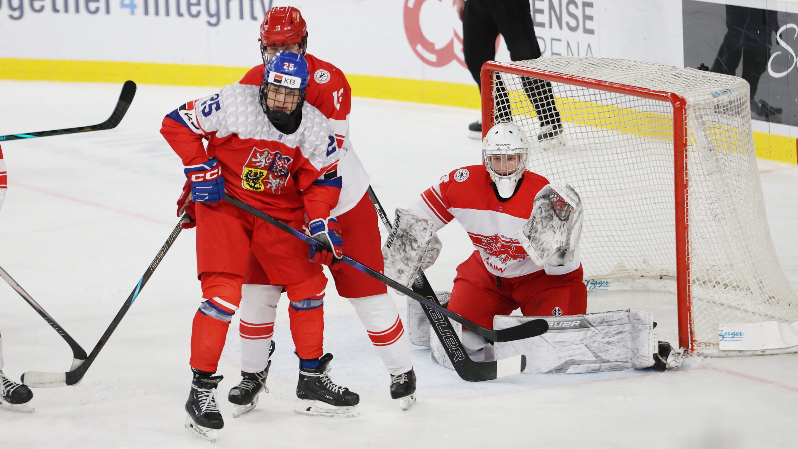 Michal Sebesta #25, Mikkel Poulsen #13, Victor Damgaard #25, IIHF U18 World Championship 2026 CZE – DEN, Vladimír Dzurilla Arena, Bratislava, © Puckfans.at / Andreas Robanser