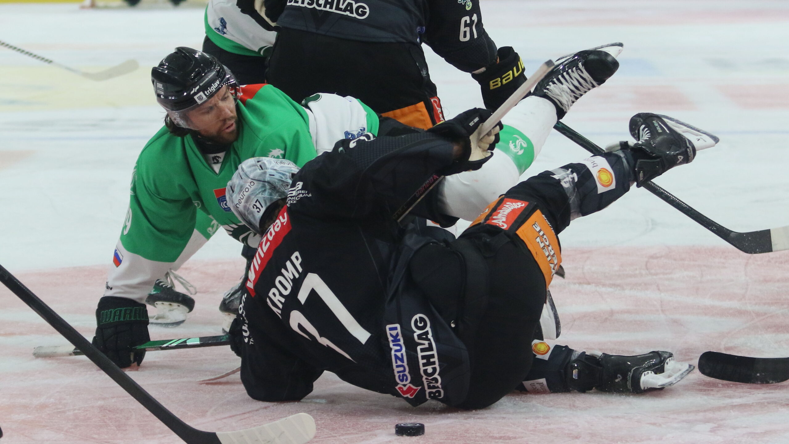 6T4A8169 3. Oktober 2025 2560 × 1440 Capitals beenden Siegesserie der Drachen Zach Boychuk #89, Christof Kromp #37, ICEHL Round 7 Vienna Capitals – Olimpija Ljubljana, Steffl Arena, © Puckfans.at / Andreas Robanser