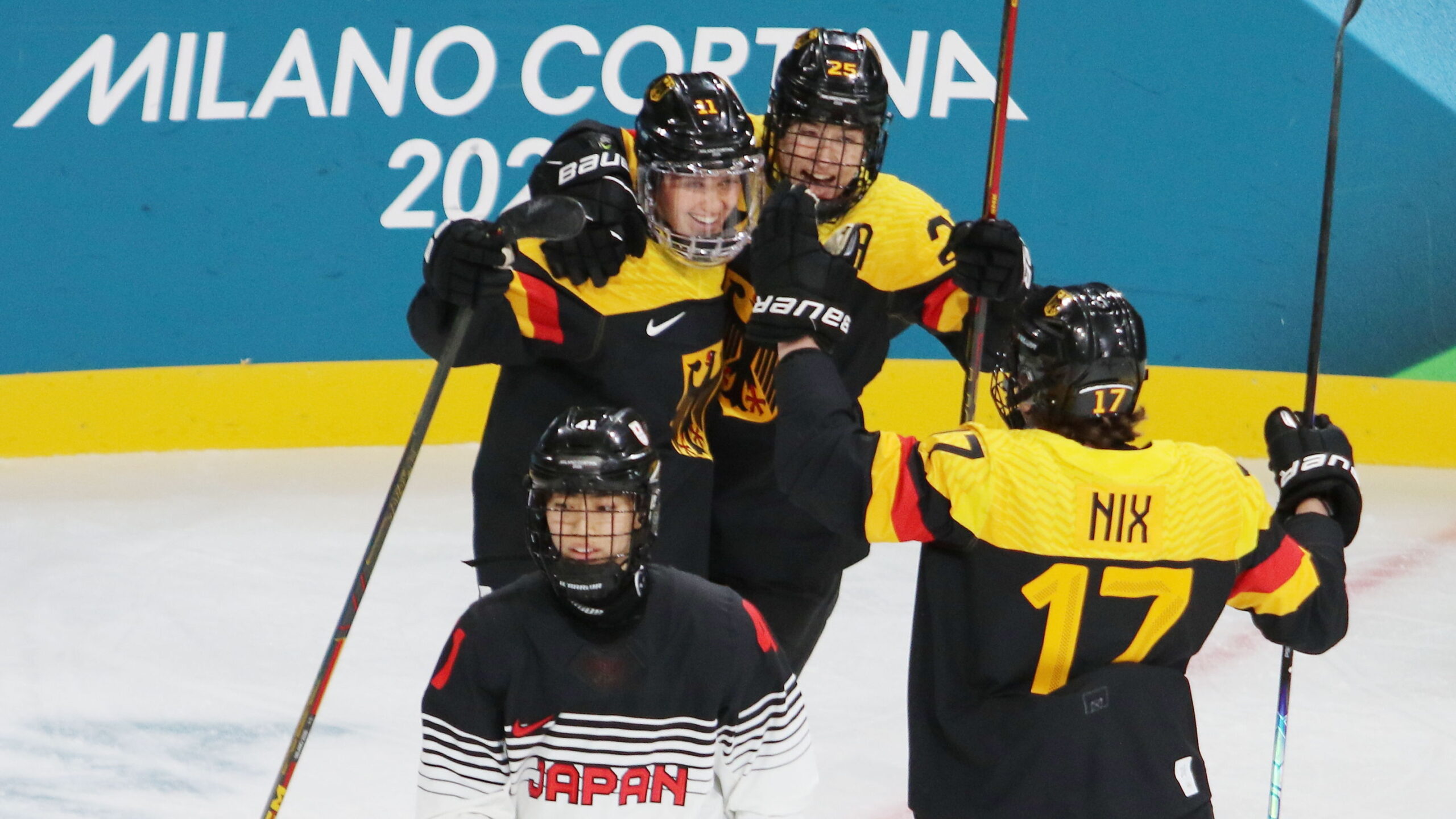 a6T4A0105 7. Februar 2026 2560 × 1440 Deutschland fährt einen sicheren Sieg ein Nicola Hadraschek-Eisenschmid #11, Laura Kluge #25, Emily Nix #17, Riri Noro #41, Olympic Games 2026 Womens Hockey GER -JPN, Milano Rho Ice Park, © Puckfans.at / Andreas Robanser