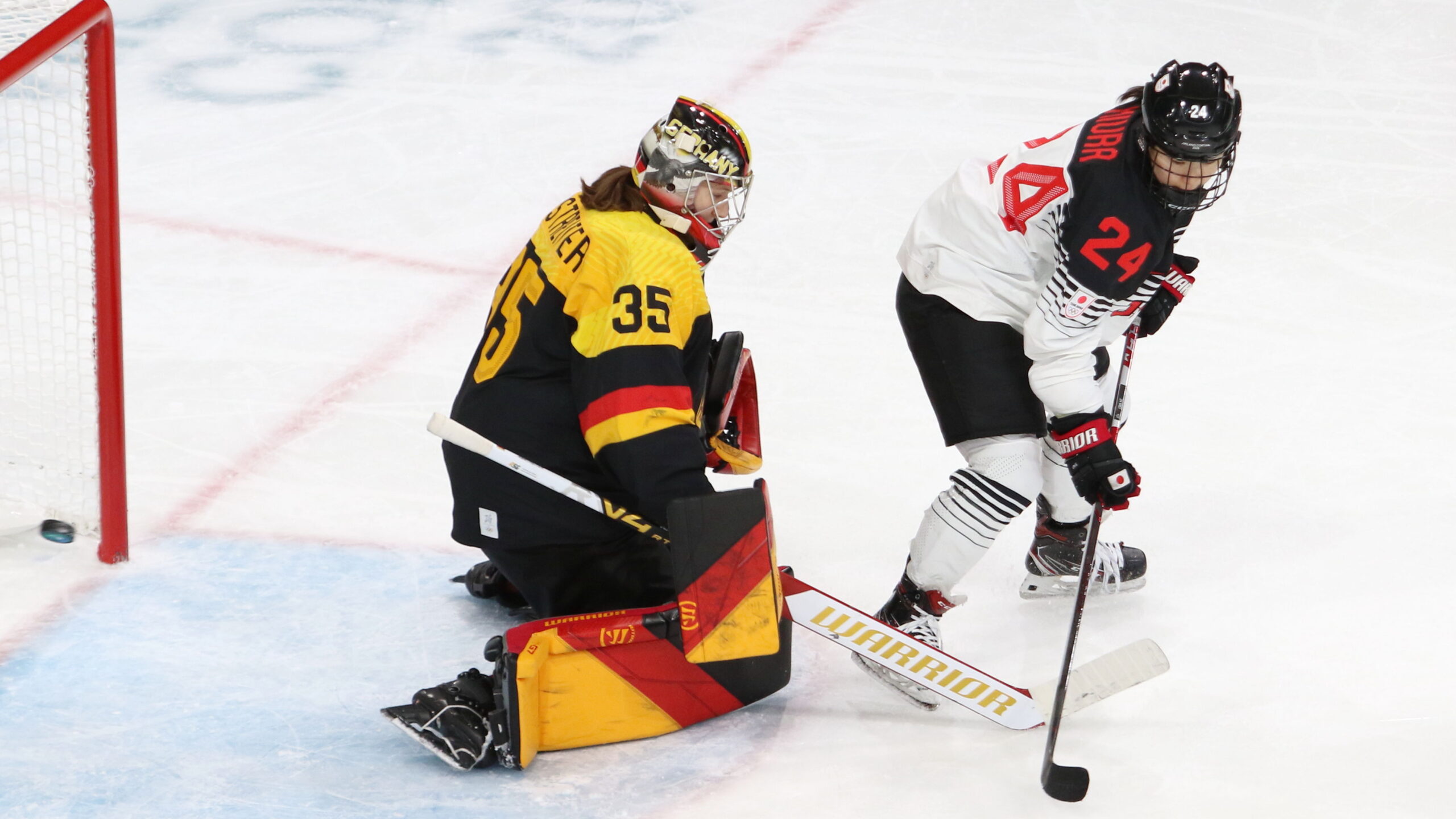 a6T4A0224 7. Februar 2026 2560 × 1440 Deutschland fährt einen sicheren Sieg ein Sandra Abstreiter #35, Mei Miura #24, Olympic Games 2026 Womens Hockey GER -JPN, Milano Rho Ice Park, © Puckfans.at / Andreas Robanser