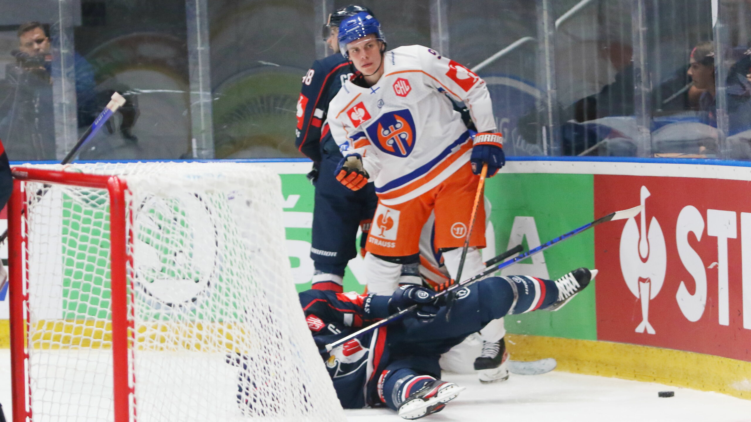 6T4A6656 1. September 2022 2560 × 1439 Die beiden CHL Finalisten starten mit Siege Champions Hockey League: HC Slovan Bratislava – Tappara Tampere Waltteri Merelä #9, Michal Sersen #8 Ondrej Nepela Arena, © Puckfans.at/Andreas Robanser