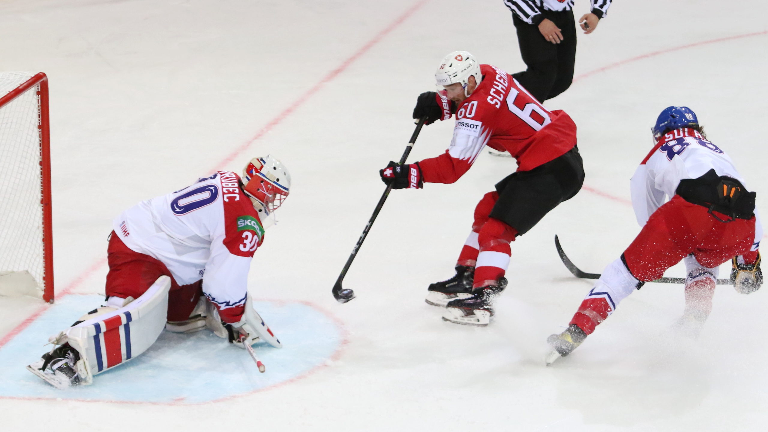 Simon Hrubec #30, Tristan Scherwey #60, Libor Sulak #88