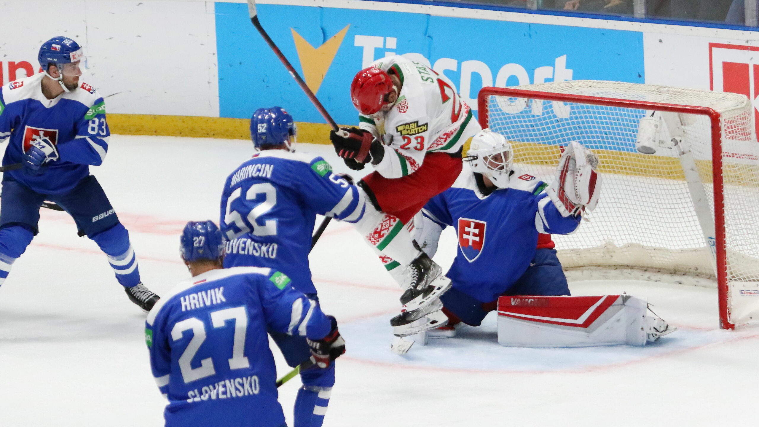 6T4A1405 29. August 2021 2560 × 1440 Die Slowakei qualifiziert sich für Peking 2022 Olympic Qualification Men SVK – BLR Christian Jaros #83, Martin Marincin #52, Andrei Stas #23, Branislav Konrad #42 Zimny Stadion Ondreja Nepelu © Puckfans.at/Andreas Robanser