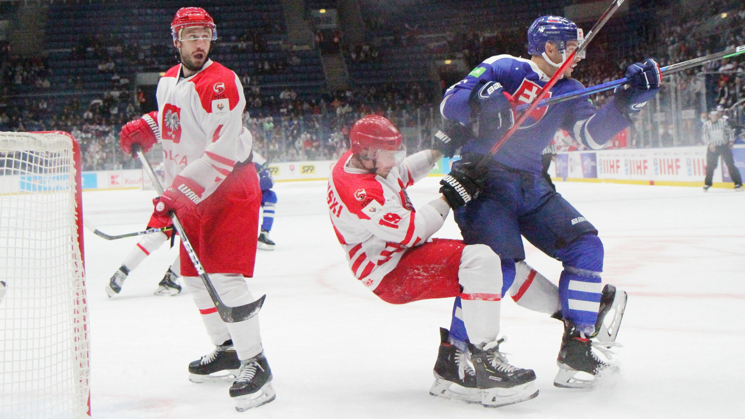 IMG_1075 27. August 2021 2560 × 1440 Die Slowaken gaben Polen keine Chance Olympic Qualification Men SVK – POL Krystian Dziubinski #19, Marko Dano Zimny Stadion Ondreja Nepelu © Puckfans.at/Andreas Robanser